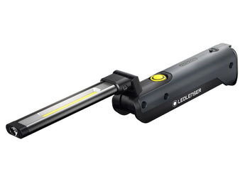The new Ledlenser iW5R is a compact and folding work light that is ideal for smaller work spaces. The iW5R has a large COB LED on a folding arm that can bend all the way back 180° from its locked position. This floodlight function can produce 600 lumens on high and run up to four hours on low. On the end of the folding arm, there is another LED for spotlight and focused lighting. These functions have the unique ability to work simultaneously to get exactly the illumination you need.