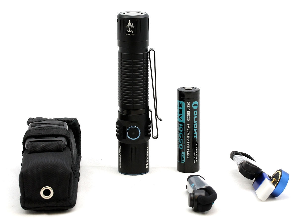 Olight M2R Warrior Rechargeable Pocket-Friendly Tactical Flashlight - CREE XHP35 HD LED - Cool White - 1500 Lumens - Uses 1 x 18650 (Included) or 2 x CR123As