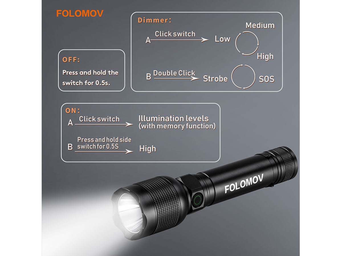 For years our friends and family have been asking for the perfect around-the-house light and we've found it: the Folomov EDC-H4! This flashlight is no muss and no fuss thanks to a quick-access side switch. Cycle through low, medium, and high modes with a simple click. Whether you're cleaning under the sink and need an extra boost of light or doing odd jobs around the house, this light has you covered. You'll love this light so much that it's a no-brainer to buy extras to store in your car, garage, and emergency kits.
