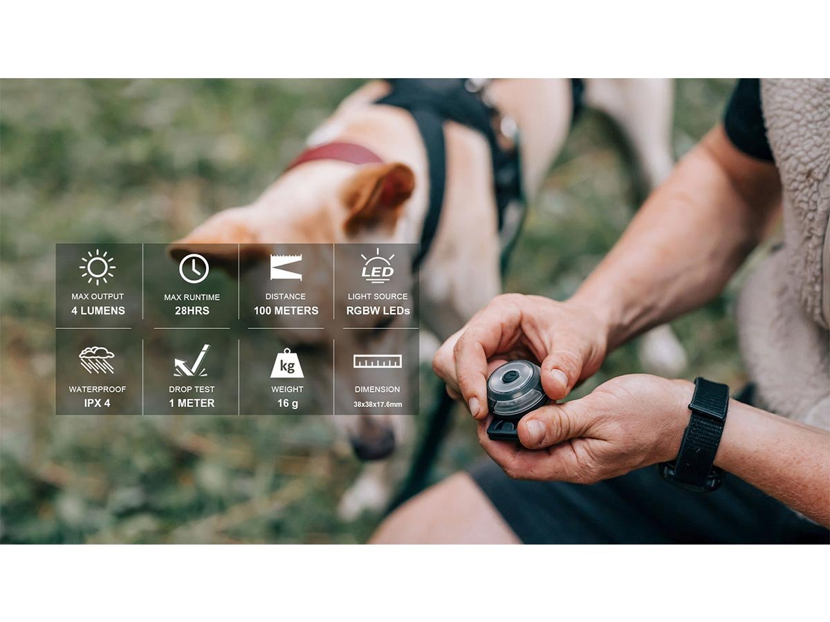 To keep yourself or your pet safe on your next big outdoor adventure, use the Olight Gober! Its 4 lumen output makes it possible to be seen from as far as 100 meters away. Its maximum runtime of 28 hours also ensures that you, or your pet, can stay visible well into a night of camping or hiking to keep you safe. With four different lighting modes combined with RGBW lighting, the Gober enables a wide variety of signaling options to suit your needs in any emergency. With USB-C charging, this light recharges in 1.5 hours so that you can get back to adventuring as soon as possible.