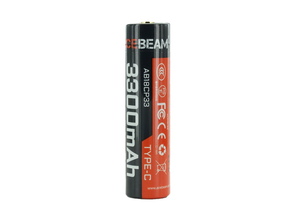 Power your favorite flashlights with the Acebeam AB18CP33-USB battery! Its lithium-ion chemistry creates a massive 3300mAh capacity to give your flashlights long runtimes. This chemistry's energy retention rates also provide a 10-year shelf life! With the built-in USB-C port, you can charge this battery from power banks, outlets, and other personal devices so you quickly get back to working or hiking.
