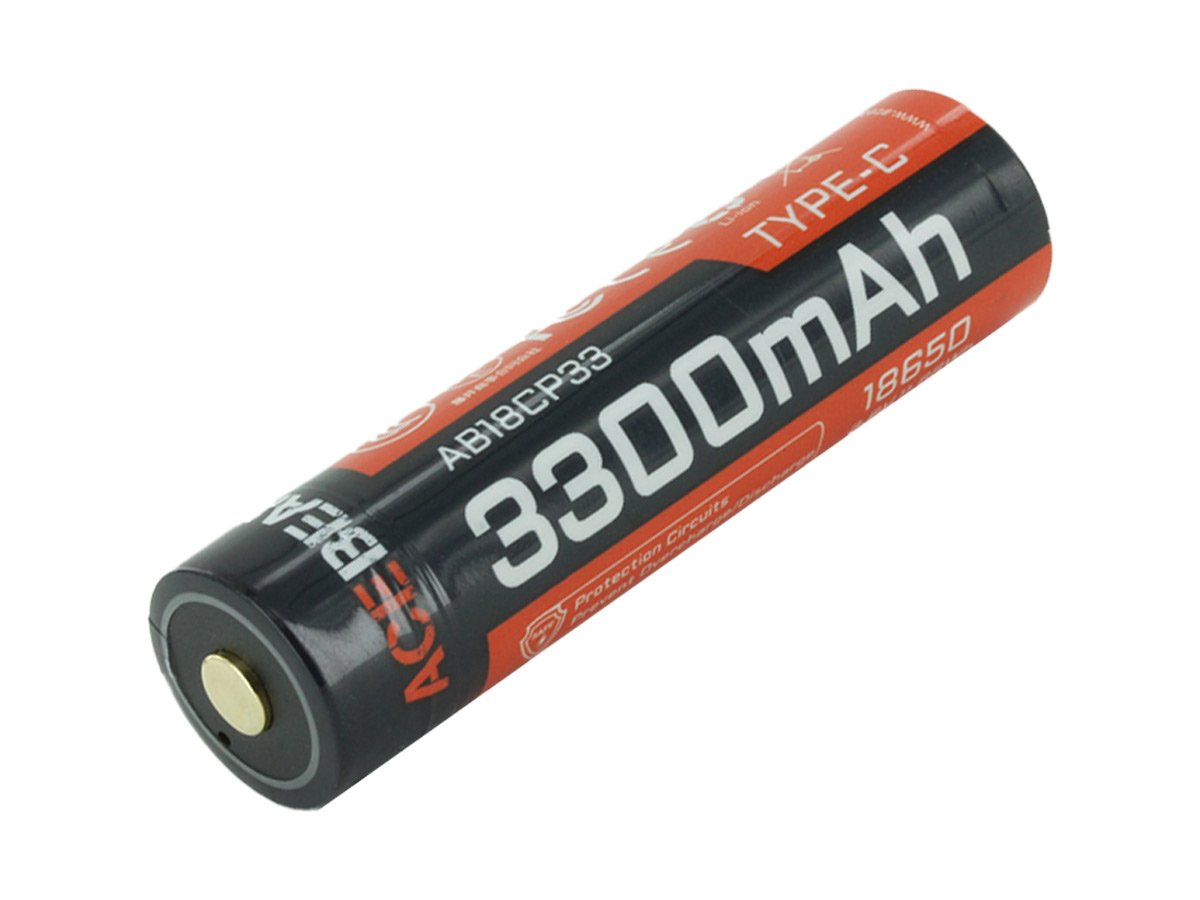 Acebeam AB18CP33-USB 18650 3300mAh 3.6V Protected High-Drain Lithium Ion (Li-ion) Button Top Battery with USB-C Charging Port