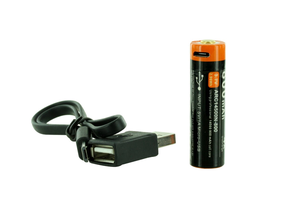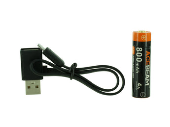 Acebeam ARC14500N-800 14500 800mAh 3.7V Protected Lithium Ion (Li-Ion) Button Top Battery with Built-in Micro USB Charging Port and USB to Micro USB Charging Cable
