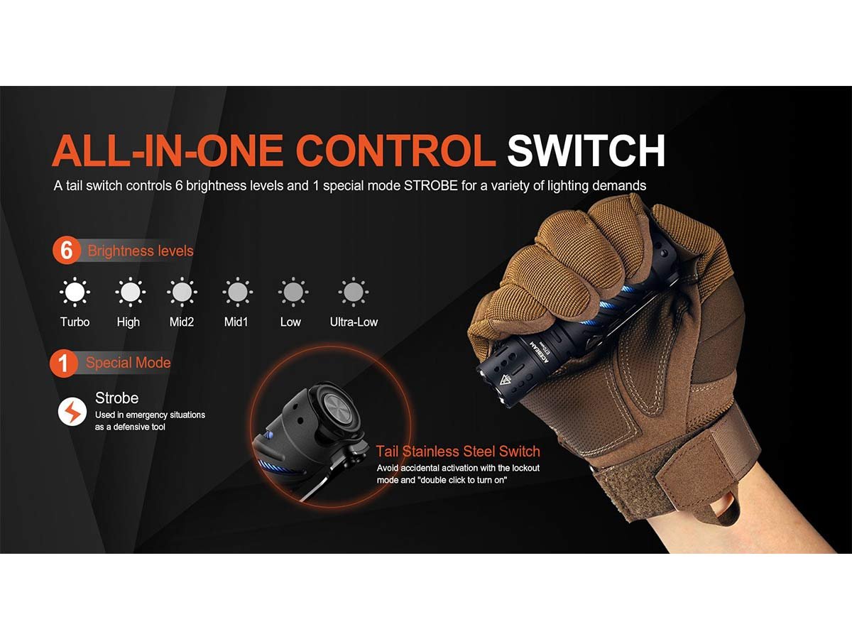 - » Tailcap switch accessible via double click, helps prevent accidental activation
