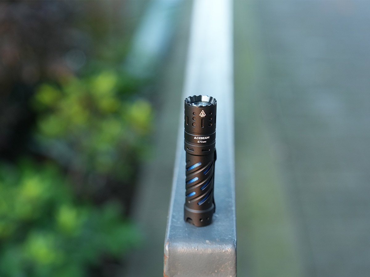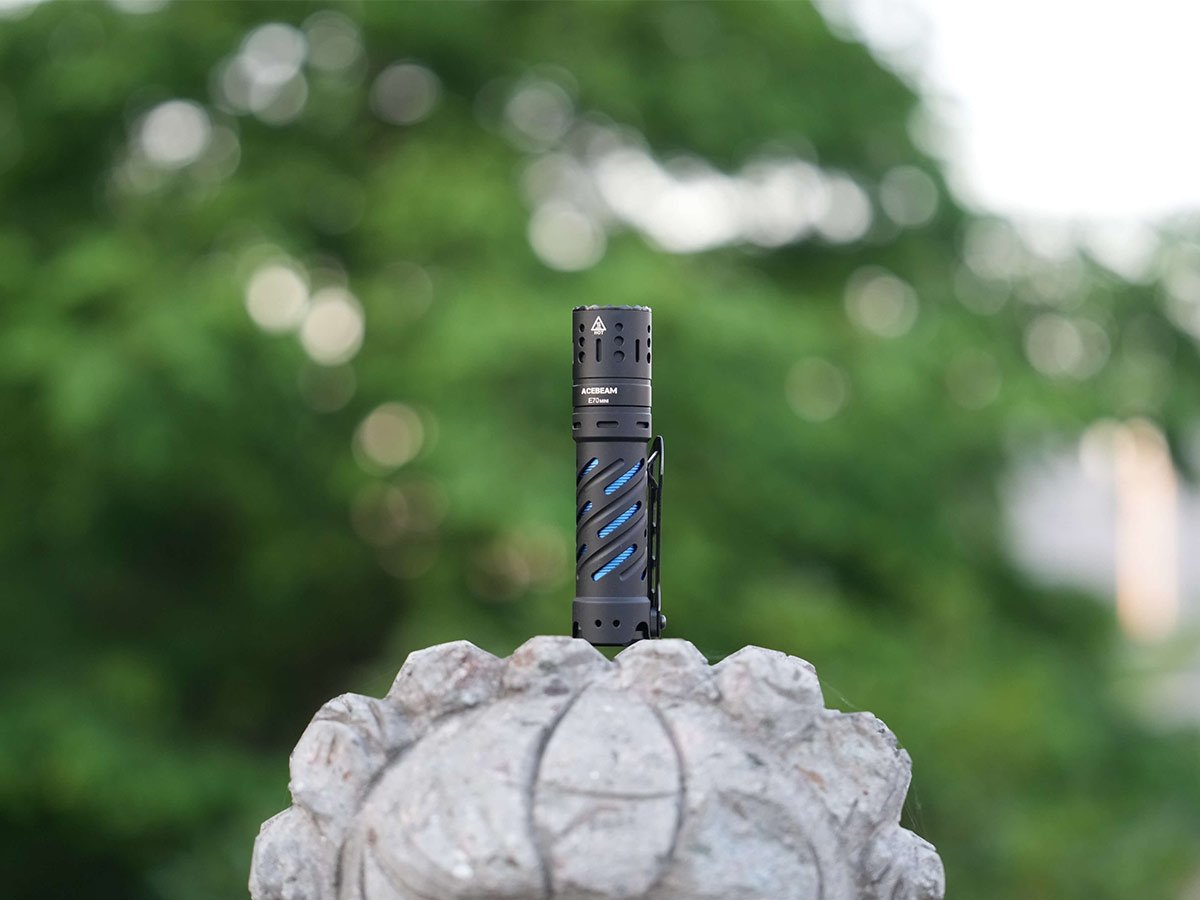 The Acebeam E70 Mini condenses all of this high-quality brightness into a 4.37-inch length and a body diameter of less than an inch. Easily keep it snug in your pocket or in your bag for quick, easy use. Keep it around to stay bright in home improvement projects, late-night hikes, or a graveyard shift.