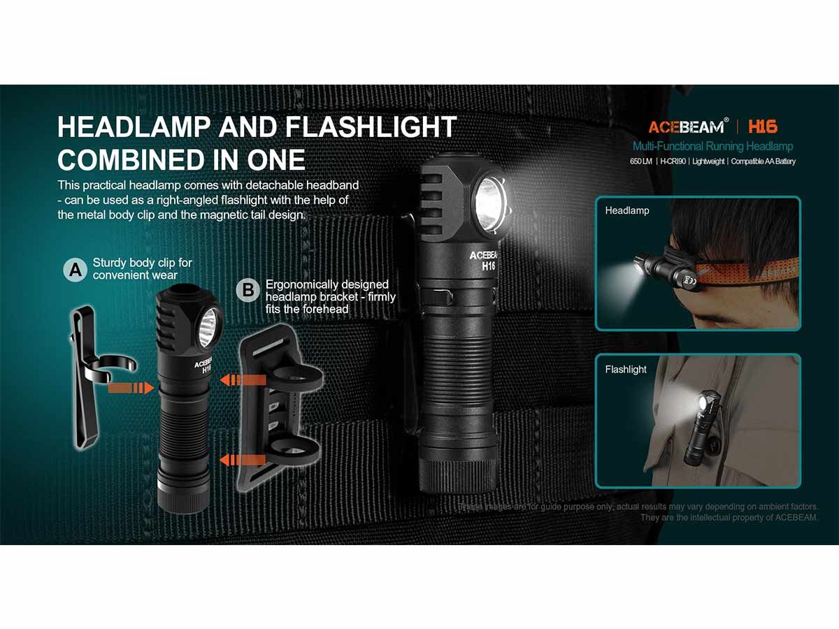 Acebeam constructed this headlamp to be fully detachable. Use the H16 either with the ergonomic adjustable headband or as a right-angled flashlight, perfect to clip on your shirt. This detachable structure makes active use a breeze and supports activities from running to climbing. The versatile design is complemented by a magnetic tailcap, giving workers a host of options for on-the-job lighting in one lightweight device!