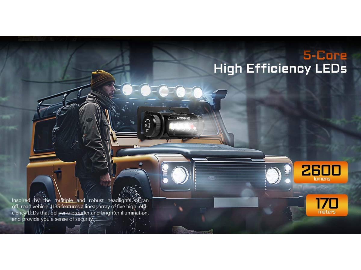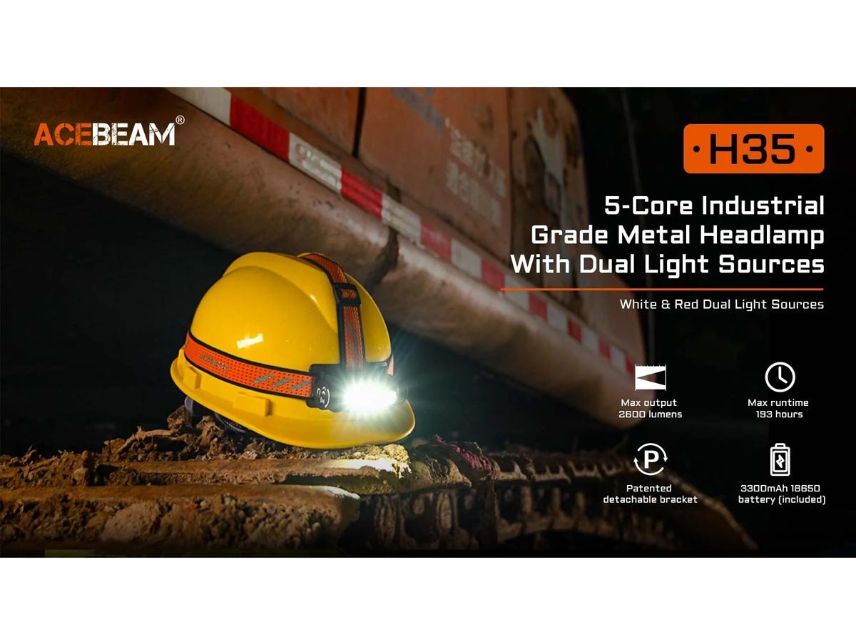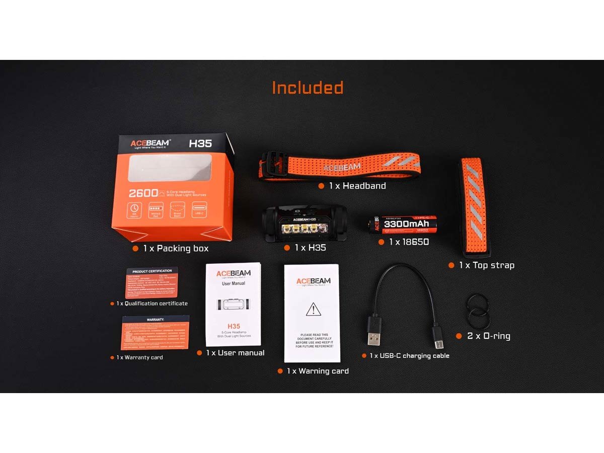 Acebeam H35 USB-C Rechargeable LED Headlamp - 2600 Lumens - Includes 1 x 18650