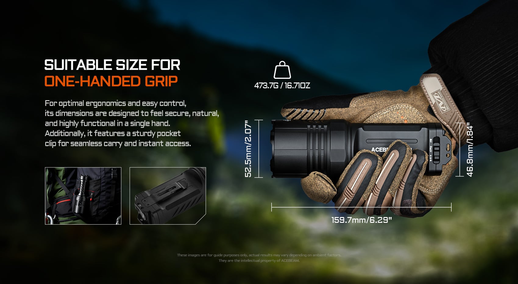 For search & rescue crews and wilderness guides, a light with the versatile range of the Acebeam X30 is a survival essential. Allowing users to wield white light outputs up to 20,000 lumens in the palm of their hand, it casts a floodlight beam over 6 and a half football fields long. A single push of the mode selector on the side activates the auxiliary red LEDs, which enhance natural night vision and attract fewer mosquitoes than white light. It's easy to cycle to lower outputs with the button on the side or instantly access Turbo and Strobe with the tail switch. In addition to the signaling and self-defense strobe, the light also has a glass-breaking strike bezel for more rescue and escape versatility. Just attach the X30 onto your gear with the steel pocket clip or holster for an all-in-one mission prep, pathfinding, and emergency lighting tool!