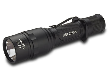 A powerful UV flashlight for forensics and crime scene investigation, the AEL280UV365nm helps you shed light on everything a potential criminal would have to hide. 365nm ultraviolet light cuts through the darkness and specifically illuminates things such as blood or protein stains, currency authenticity markers and much more. UV light can also be used in the process of curing certain inks, lacquers and glues. This light runs on 2 CR123A batteries and features a solid state LED that can withstand heavy use.