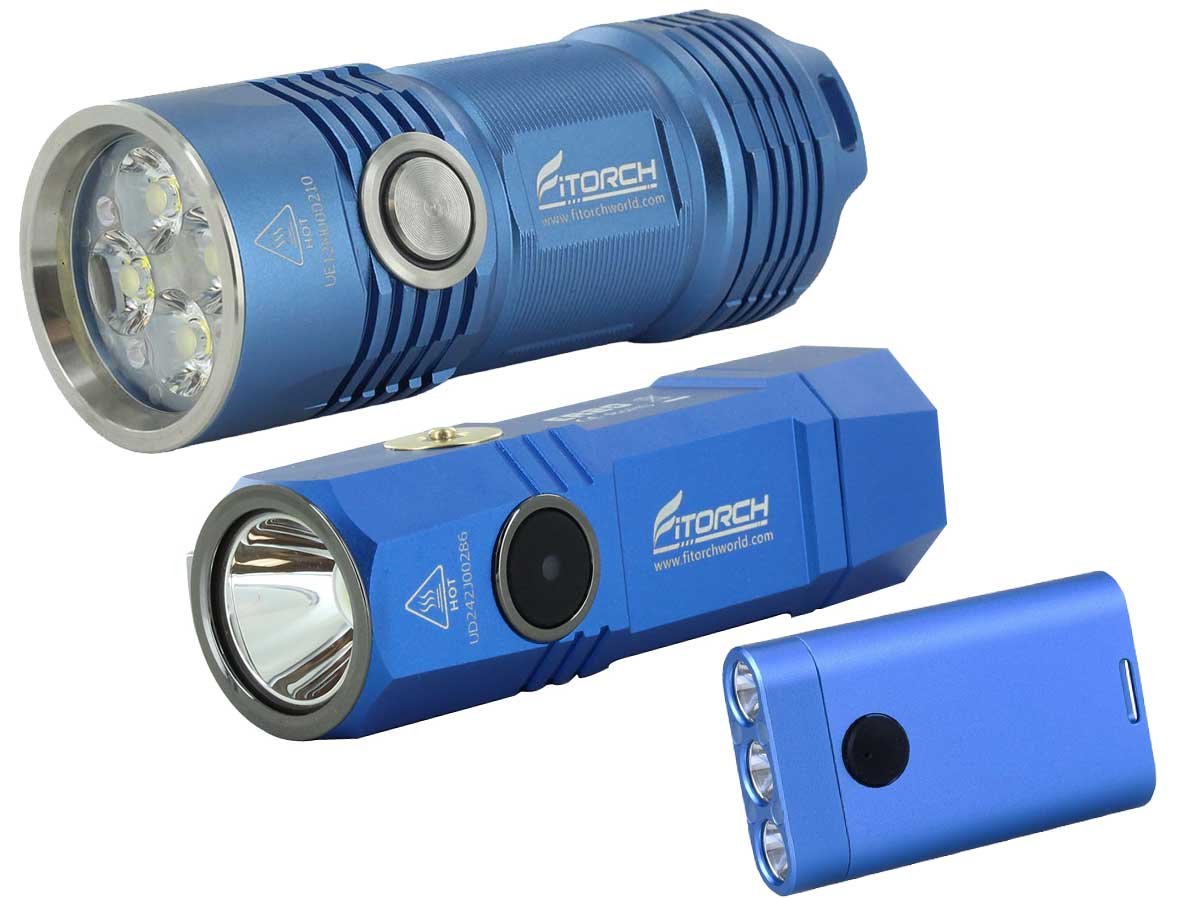 BUNDLE: 1 x Fitorch P25 Little Fatty LED Flashlight with 1 x Fitorch K3 Lite Rechargeable LED Keychain Light and 1 x Fitorch ER20 Rechargeable LED Flashlight - Blue