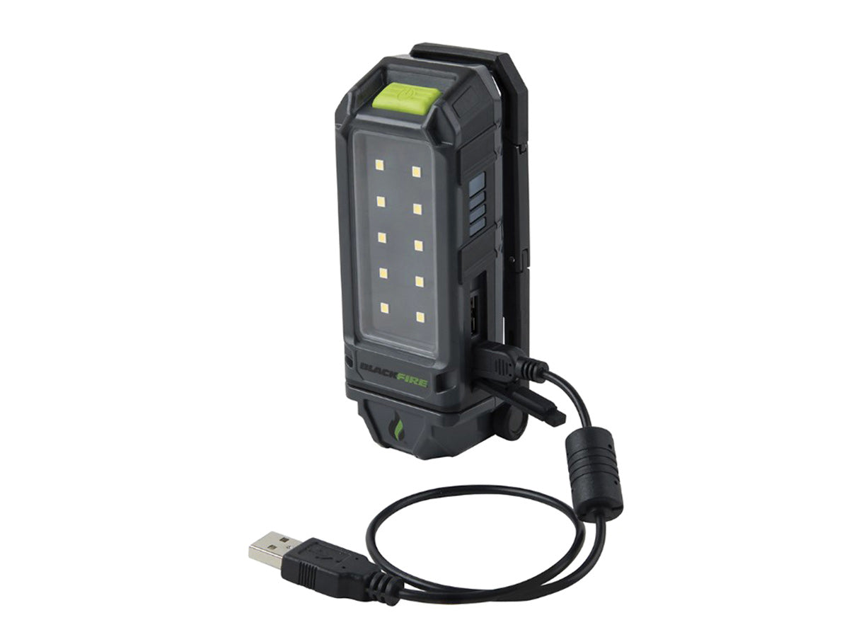 The new Blackfire WLMC1 is a rugged and compact light that can be used for work, home, or even on a camping trip! Choose from two different lighting modes to select which brightness level fits your needs the best. You can run the low lighting mode for over 10 hours! This unique design combines a hands-free light with adjustable stand and an emergency power pack! Easily put this light to work anywhere you need it. The adjustable stand provides you with different angles of wide beam illumination that can tilt 260° and rotate a full 360°. Put it on a work desk, on the floor of a garage, or on the ground at a campsite to light up the area. Have a magnetic surface? The back of the light is fully magnetic and be placed without its stand for ideal positioning. Also included is a heavy-duty carabiner and hanging loop so you can suspend it from a wire or tent rope if need be. While using the WLMC1 for lighting, you can also charge a separate device at the same time with the USB output charging feature! Recharge this light's built-in Li-ion battery pack hundreds of times with the included (or any standard) Micro USB cable. You can depend on Blackfire to have the innovative products you need for various situations and adventures.