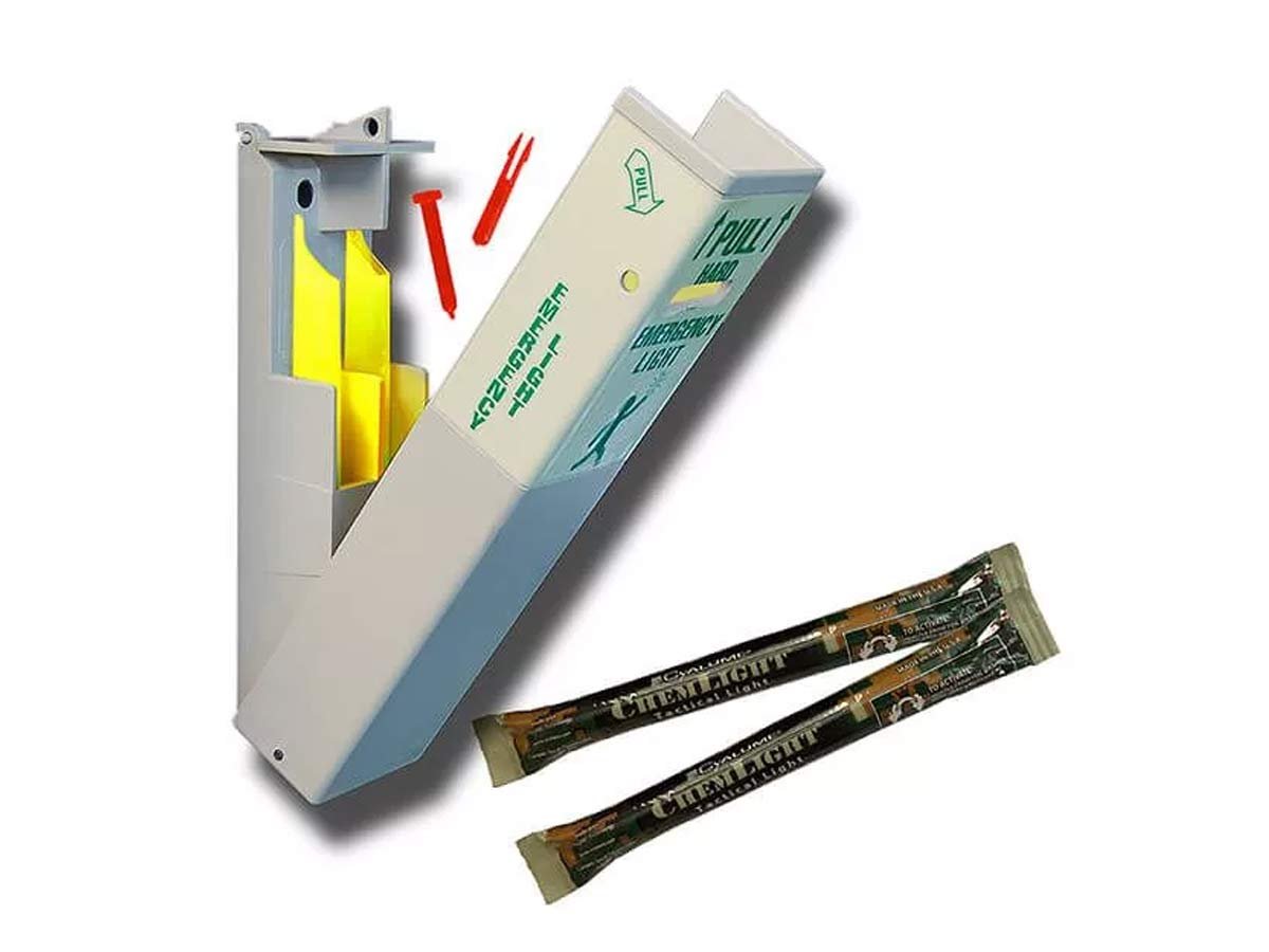 The Cyalume S.E.E. System is a wall mounted evacuation lighting system for offices, stairwells, common areas and marine vessels. This system is maintenance free, and requires no batteries or generator hookup. The S.E.E. System provides 360° of safe illumination once the handle on the front cover is pulled open. Two 6" yellow HI ChemLights are automatically activated when cover is opened to ensure safety. Evacuees have the option to remove one light stick for mobile lighting while the other stays stationary to light the evacuation route.