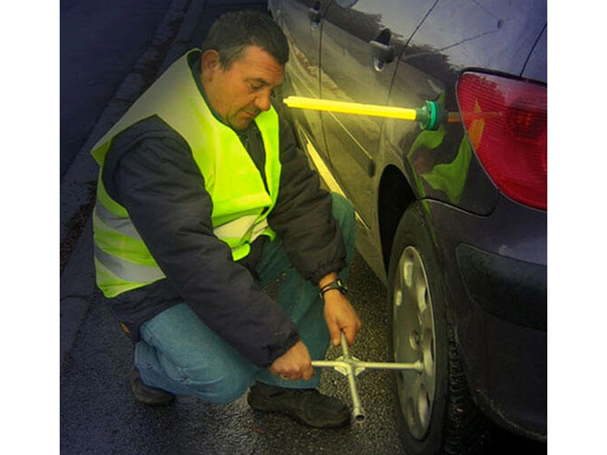 - » Prevent traffic accidents and personal injury when making breakdown repairs by affixing the magnetic base to your vehicle's fender for attending to tires, or beneath the car hood for engine work