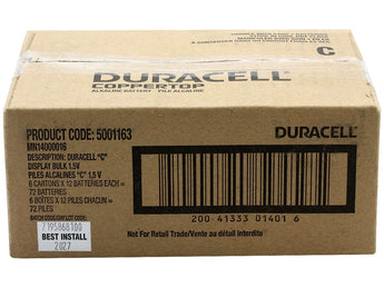 Duracell C cells are new and improved to meet the demands of powering up devices. The technology of the Duralock battery has been constantly upgraded to provide advanced performance in popular battery powered devices. Best of all, Duralock Technology employs the cleanest chemistry to create incredibly efficient batteries, ensuring up to 10 years of power in storage and 10 years of trust. These Duracell MN1400 C cell alkaline batteries are sold packs of 72.The Duracell CopperTop is best suited when you need reliable, long lasting life from your everyday devices!