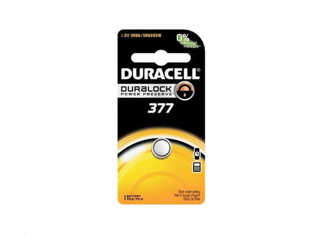 The Duracell D377 is a silver oxide button cell that will be a perfect fit for everyday household items, from digital thermometers, hearing aids, or glucometers. The D377 has a low self-discharge and, like all silver oxide button cells, maintains a stable output voltage during its service life. Plus, with the ability to operate in a vast variety of temperatures, the D377 is ideal for people living in any type of climate.