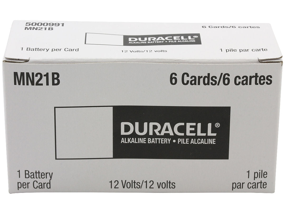The Duracell MN21/A23 12 Volt battery is a miniature alkaline battery. These are packaged in individual retail blister packs; six packs to the box. Outstanding performance and reliability combined with a great price makes this Duracell 12 Volt battery a great buy and 100% guaranteed. Replaces: 23A, 23GA, A23, E23A, GP-23A, GP23A, K23A, L1028, LR23A, LRV08, LRVO8, MN21, MS21, V23, V23GA, VR22, 1811A, VA23GA, MN-21B. For use in: remote controls, car starters, remote starters, toys, pagers, garage door openers, and any personal electronics that use 12v A23 style alkaline batteries