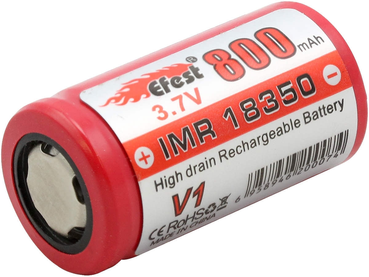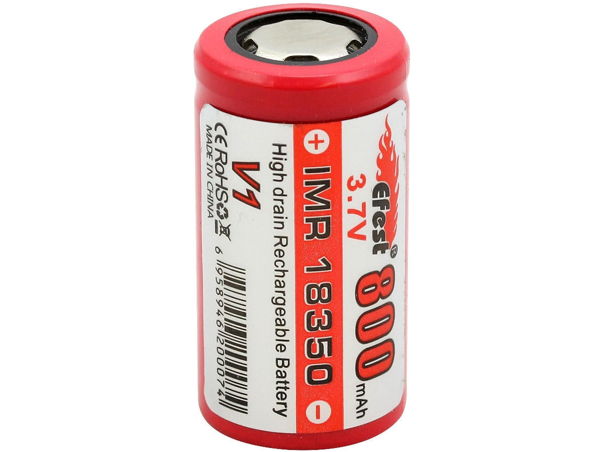 Efest IMR 18350 batteries are the perfect power source many devicers thanks to its IMR chemsitry. Since they use safer chemistry, they do not require a built-in protective circuit like ICRs do. The flat top terminal allows these batteries to fit securely in most electronics. If you're looking for a reliable and long lasting power source, the Efest 18350 is the battery for you.