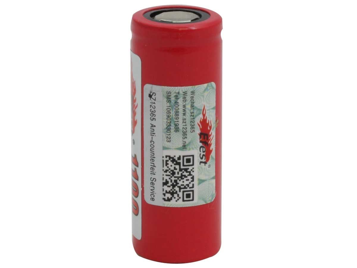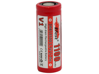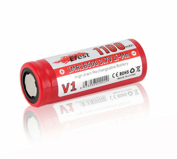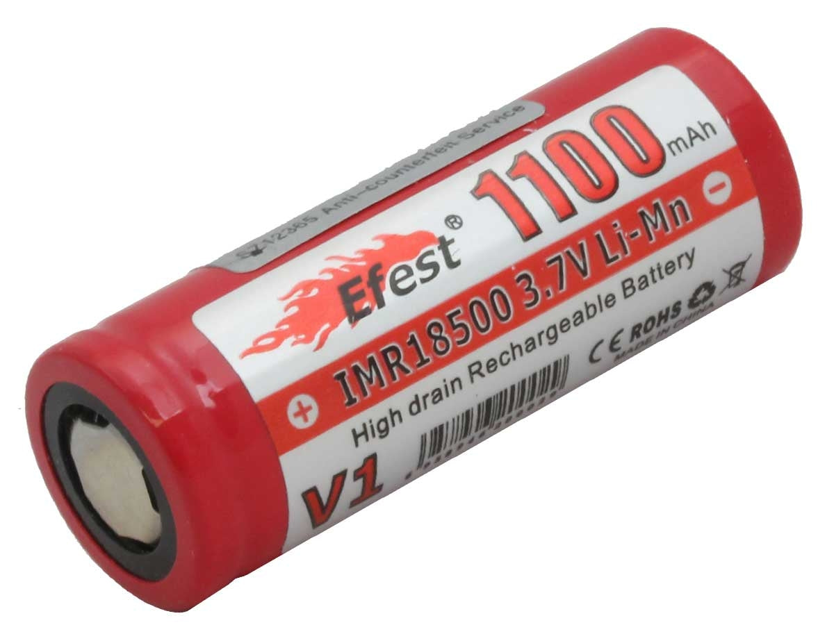 The Efest IMR 18500 is the perfect battery for electronic devices. Their IMR chemistry is the safest way to power your electronic devices. The flat top terminal fits securely in most units and the 1100mAh capacity will keep your devices running for a long time. Efest batteries are a quality, reliable and long lasting power source that you can count on to fuel your devices.