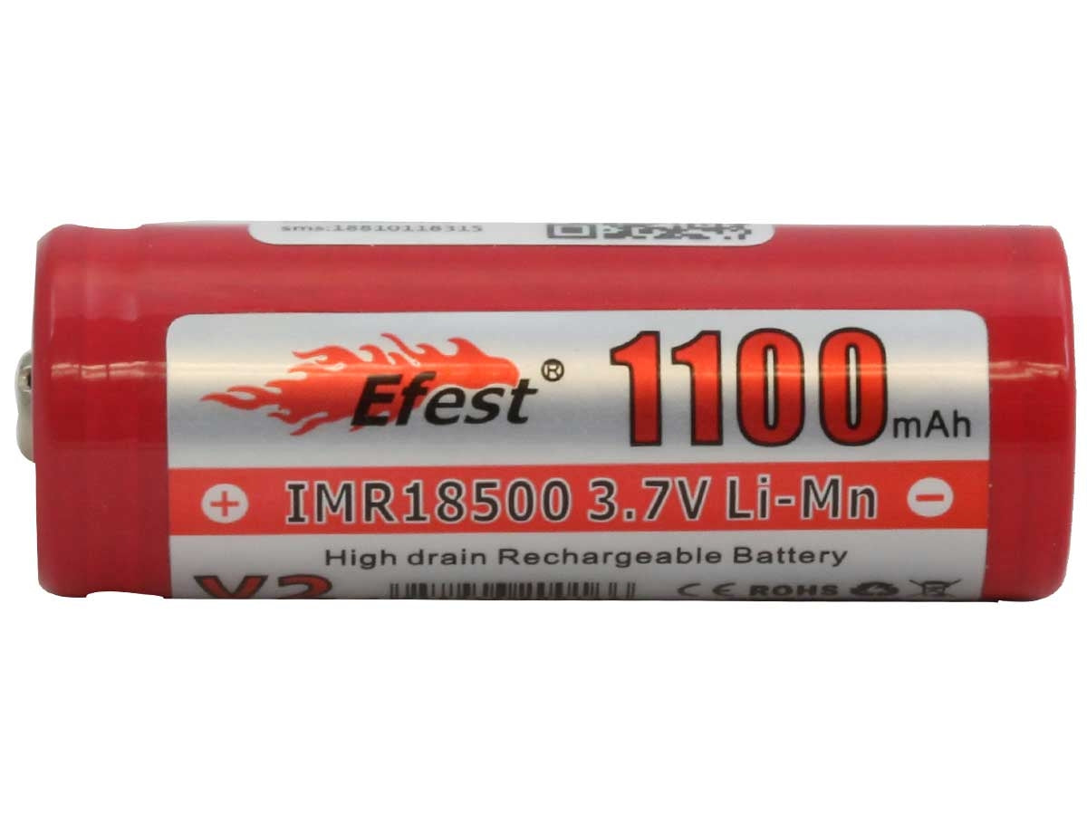 Efest 3163 IMR 18500 1100mAh 3.7V Unprotected Lithium Manganese (LiMn2O4) Button Top Battery - Boxed