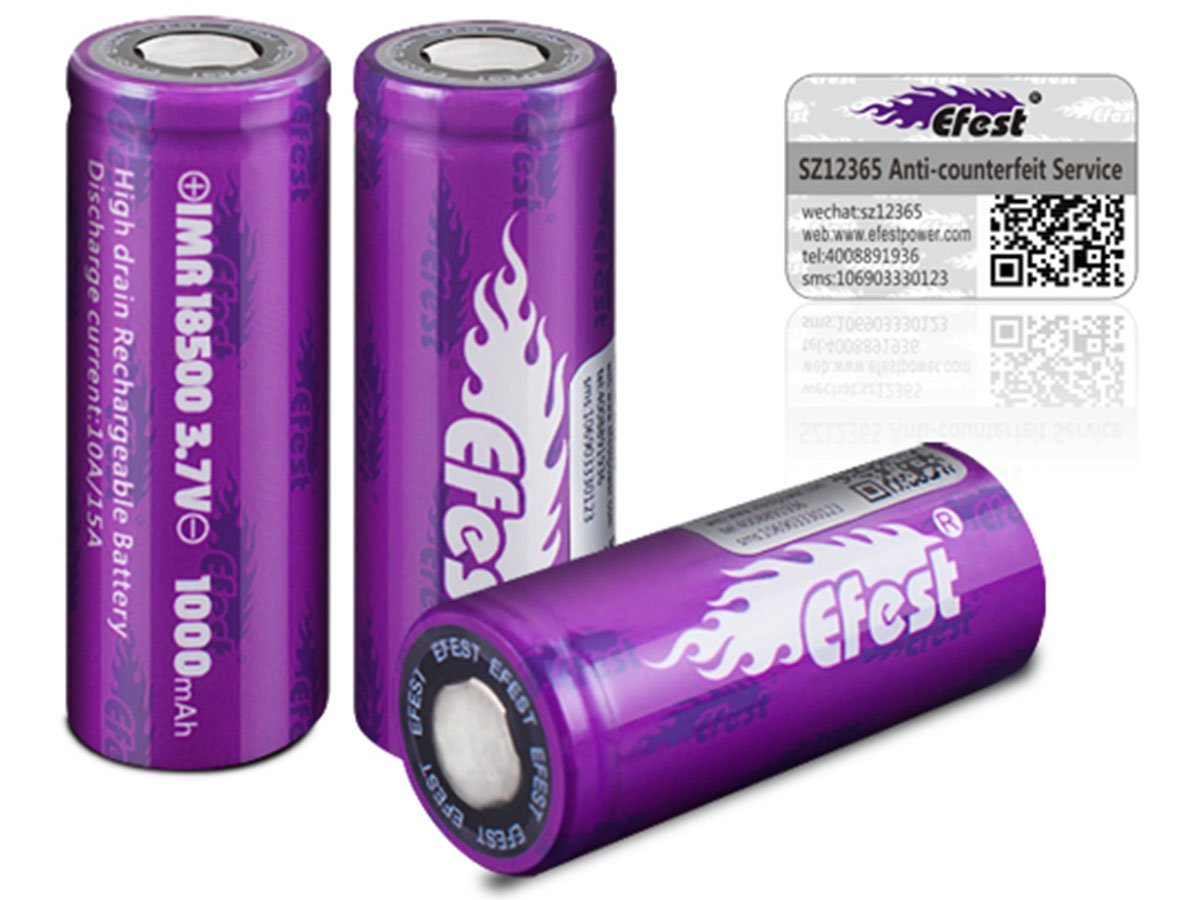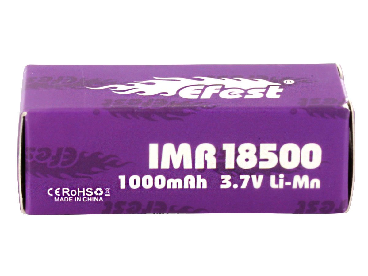 Efest Purple 4340 IMR 18500 1000mAh 3.7V Unprotected High-Drain 15A Lithium Manganese (LiMn2O4) Flat Top Battery - Boxed