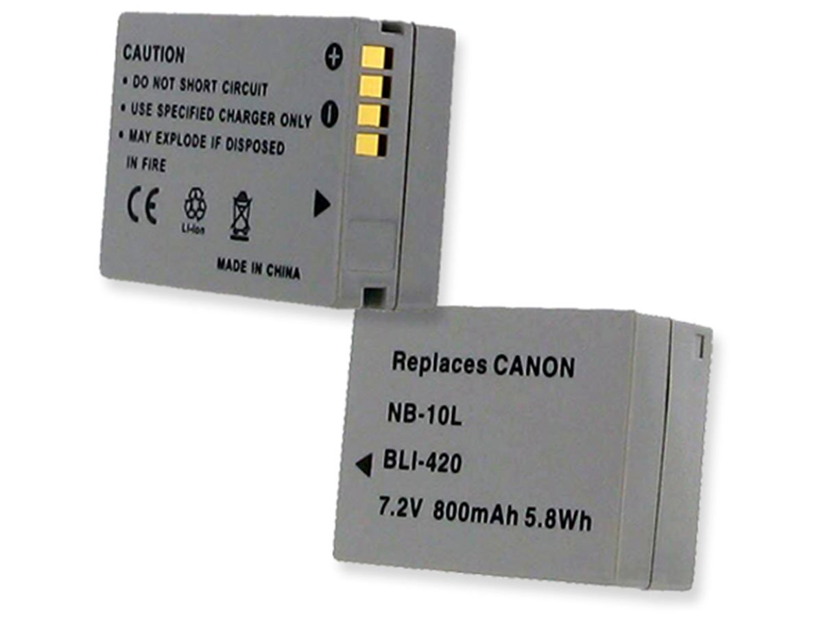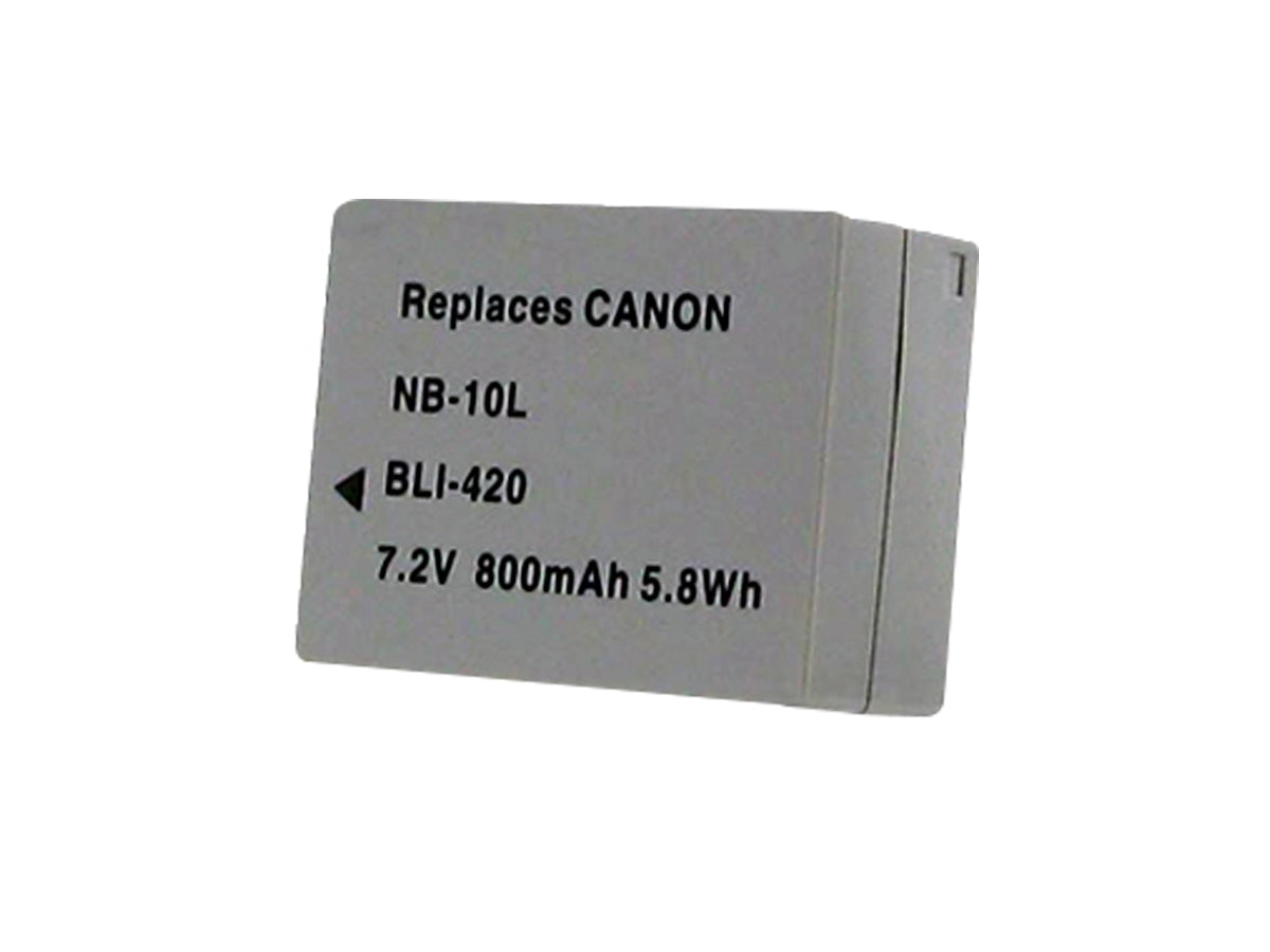 The BLI-420 is a Li-ion rechargeable battery pack replacement for Canon Camera batteries. It is a 3.7V battery with a capacity of 800 mAh. The BLI-420 replaces Canon Camera Powershot series batteries, and is compatible with a variety of Canon Camera Models.