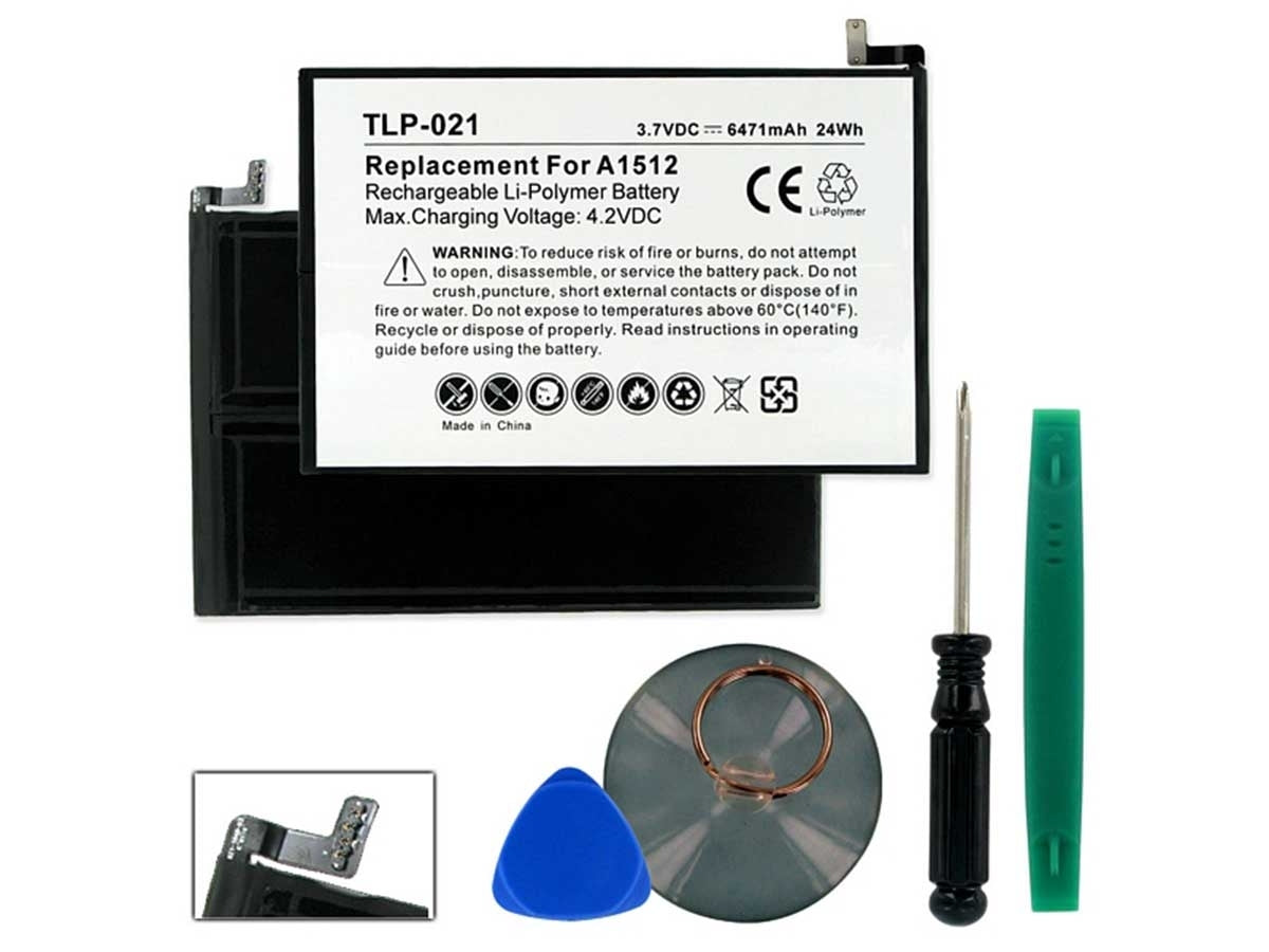 Get your favorite tablet back up and running with this replacement battery for the iPad Mini 2. This all inclusive replacement kit includes the 3.7 Volt lithium polymer battery with 6471mAh capacity, as well as necessary hardware to open the device and replace the power source.