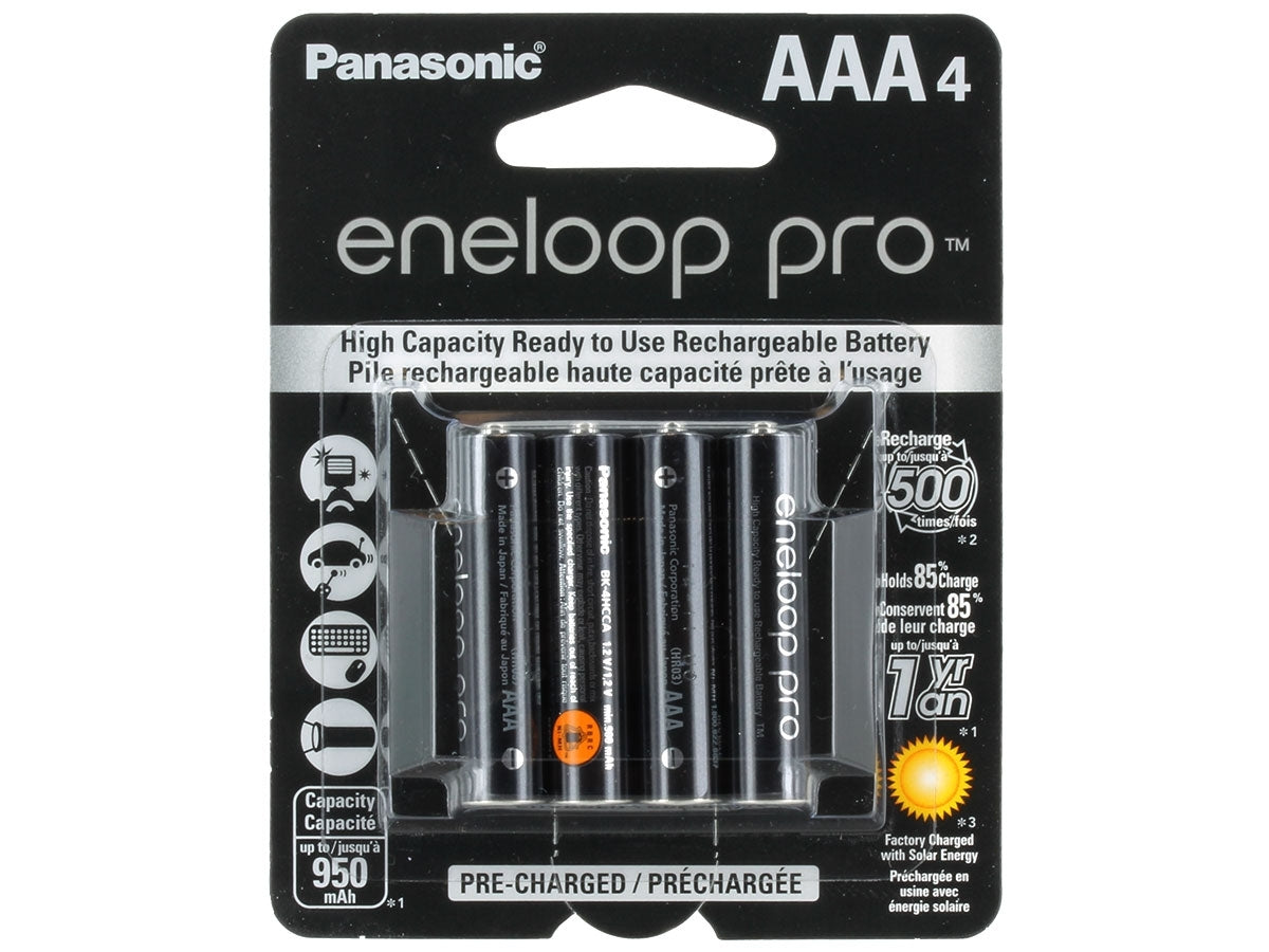 When nothing but the best will do, Panasonic Eneloop Pro bring the power and quality you need for the ultimate in convenience and reliability. Low Self-Discharge batteries last longer in electronics, and maintain their charge while not in use so they are perfect for remote controls, alarm clocks and other low drain devices. With 950mAh they are no slouch in high drain devices either and make powering flashlights and heavy duty devices a breeze. Eneloop Pro can be recharged up to 500 Times, making them a worthwhile investment for any home or workplace.