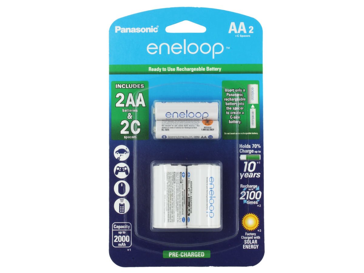 Panasonic Eneloop AA NiMH Batteries with C-Cell Spacers
