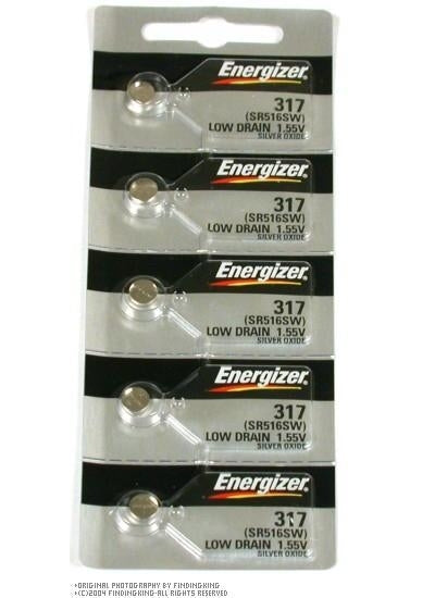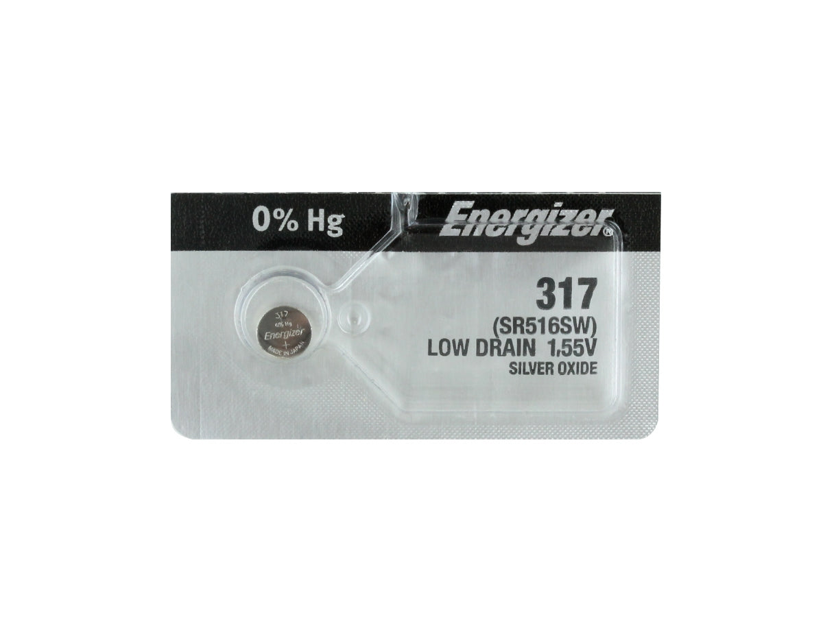The Energzier 317 is a button battery made of a silver oxide chemistry and is a compact and reliable replacement battery for any small continuous use device. The silver oxide chemistry of the Energizer 317 ensures a stable output voltage and low self-discharge that lasts throughout the course of the cell's service life. Ideal uses for this SR516SW coin cell include powering watches, calculators, small electronic toys, digital thermometers, glucometers, heart-rate monitors, and keyless remote entry systems for cars and homes. With a Factory Fresh guarantee it is no wonder Energizer is a globally trusted and reliable brand.