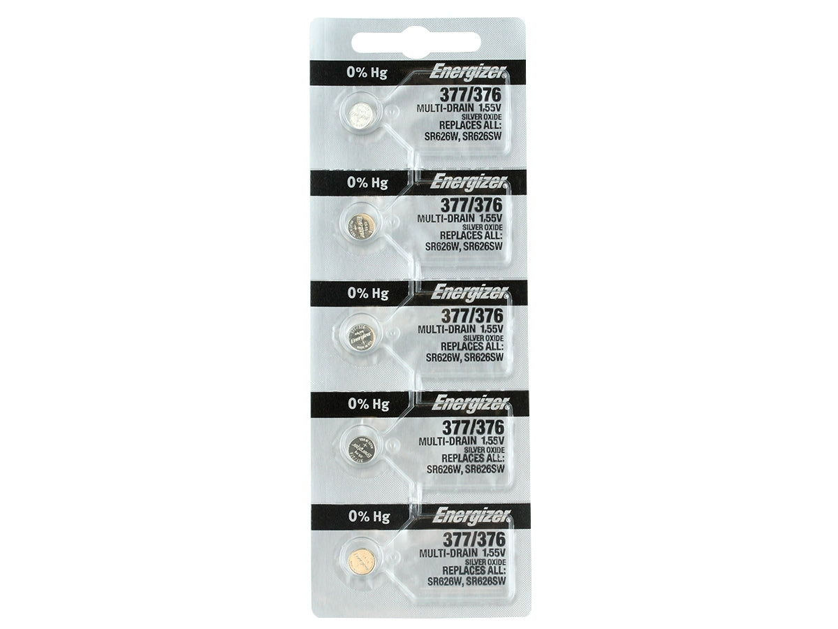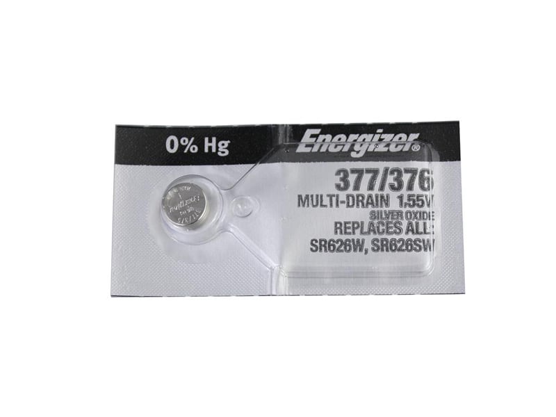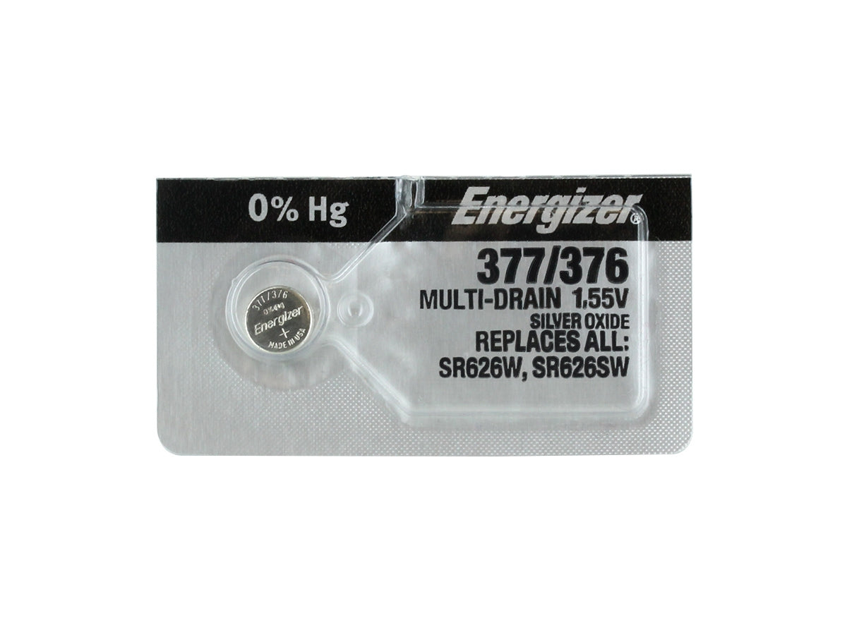 With the chemistry of a silver oxide coin cell, the Energizer 377/376 battery has some of the best characteristics to be found in coin cells. With a silver oxide composition, the Energizer 377/376 has a stable output voltage over the course of its service life and a low self-discharge making this battery ideal for continuous use devices. Ideal applications for this button cell include use as a replacement battery in watches, calculators, keyless remote entry systems, small electronic toys, and even for small medical devices such as digital thermometers, glucometers, heart-rate monitors, and blood pressure cuffs. The Energizer 377/376 has a shelf life of 4-6 years, making it a perfect battery to buy in bulk quantities.