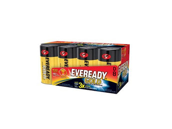 - Energizer Eveready Gold D batteries in an 8 piece family pack