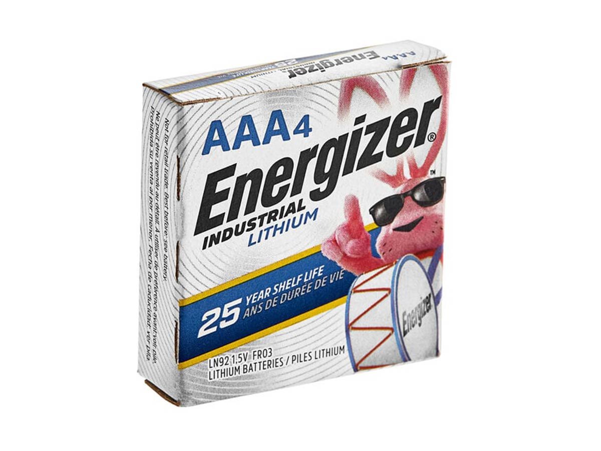 Energizer Industrial Lithium LN92 AAA 1250mAh 1.5V High Energy 1.5A Lithium (LiFeS2) Button Top Battery - 4 Pack Box