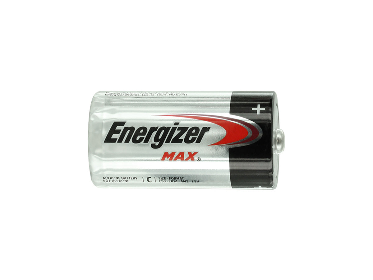 Energizer MAX Keep Going and Going and Going! The Energizer MAX cells are long lasting batteries that are ideal for a wide array of devices. Ranging from low drain applications such as radios and remote controls to more intensive purposes, such as toys and large portable stereos. Energizer batteries are a perfect choice for the environment as they do not contain mercury and cadmium. They also keep a shelf life of up to ten years, so they should hold you over. When you need batteries that just keeping going and going and going, look no further; Energizer MAX batteries have you covered! Specifications: Battery Size: C Classification: Alkaline Chemistry: Zinc-Manganese Dioxide (Single Use) Voltage: 1.5V Designation: ANSI-14A, IEC-LR14 Nominal IR: 150 to 300 milliohms (fresh) Operating Temp: -18°C to 55°C (0°F to 130°F) Shelf Life: 10 years at 21°C Typical Volume: 26.9 cubic centimeters (1.6 cubic in) Diameter: 1.03" (26.2mm) Height: 1.97" (55mm) Weight: 2.3 oz. (66.2g)