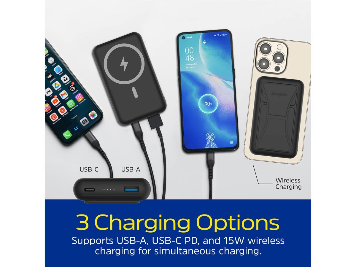 The ultimate desk charger is ready for action - the Energizer QM10002PQ is here! Simply place your smart device on the magnetic surface and it will wirelessly charge rapidly. With a capacity of 10000mAh, you give your smartphone up to 36 hours of screentime, and tablets between 8-12 hours for zero interruptions in your busy schedule. Combine that with the convenient upright stand, and your smart device is secure. Whether you have a full day of meetings, are working on your digital art masterpiece, or are just watching videos, you have hours of charge at your disposal. Why stop there? You can also charge via USB-A or USB-C output, so all your electronics are covered, perfect for that spare flashlight or to power up your device on the move. Whether charging up in the office or on the road, this power bank gives you and your electronics the power needed to carry you through!