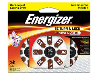 Long lasting power you can count on, the Energizer Size 312 hearing aid battery can't be beat. This lightweight battery is perfect for powering up your everyday hearing assistance technology, providing reliable power that runs longer than competing brands' batteries. Manufactured with zinc air chemistry that is mercury free, these batteries are safe to use and dispose of as you see fit. Paired with EZ Turn & Lock packaging, there's no way more convenient to keep your hearing aid charged and ready for use.