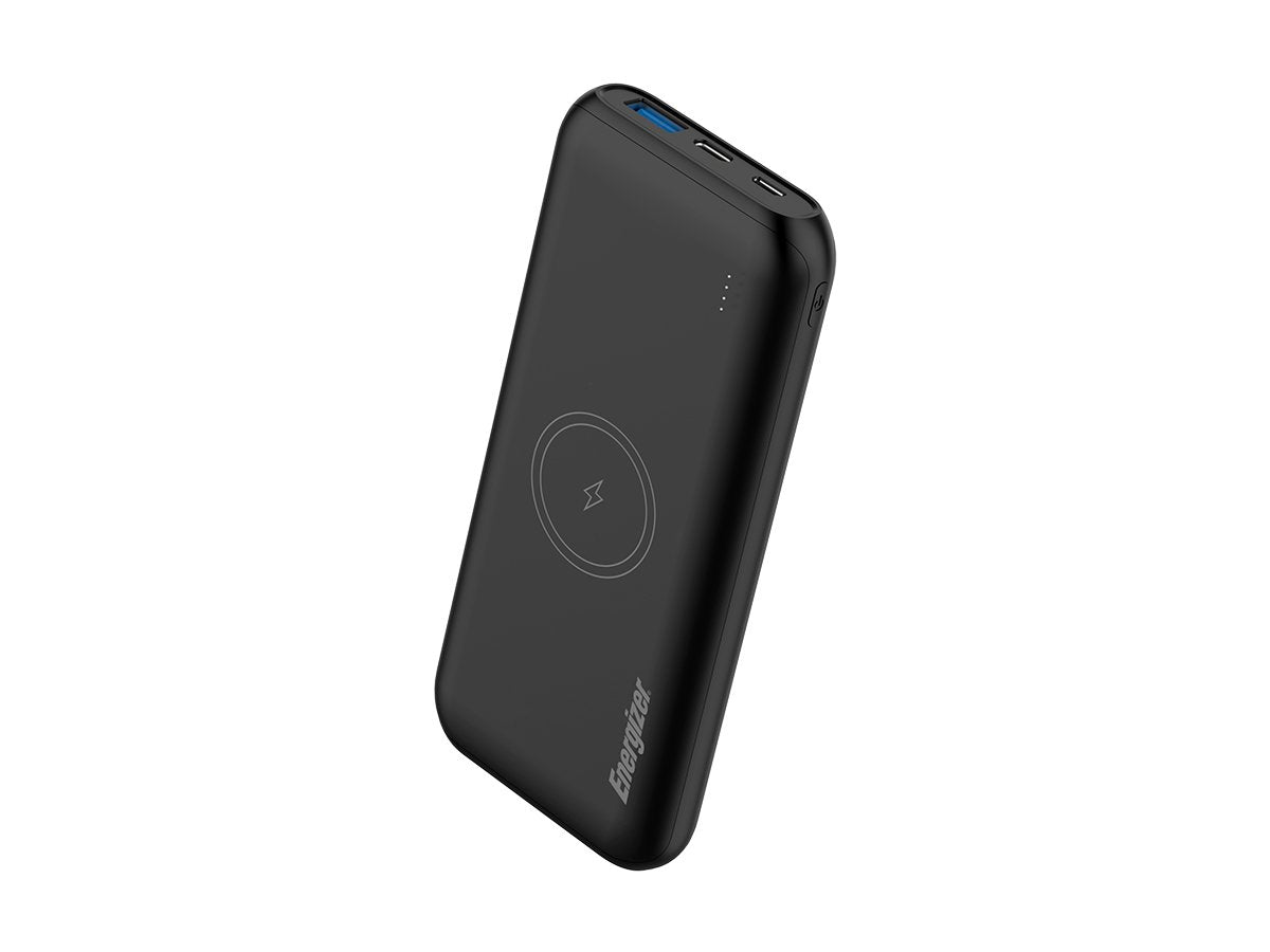 With an Energizer Wireless/USB Power Bank, the problem of remembering a charging cord is solved! Since the iPhone and many other modern electronics are compatible with magnetic charging methods, you can power up smartphones and more from your workplace or campsite without the usual hassle. While many wireless chargers only offer a trickle of power, Energizer's Wireless/USB Power Bank has full-fledged rapid recharging at speeds up to 15W! When you're in transit, you can also use the power bank's dual USB output ports for a secure, corded connection. Get your choice of the ultra-slim 10,000mAh capacity model, or double up with an upgrade to the 20,000mAh high-capacity version. Either way, you'll have hassle-free portable charging - quick, easy, and versatile: that's Energizer Power at work.