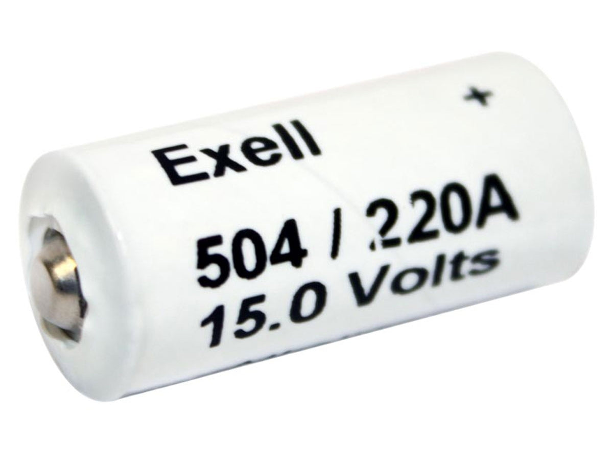 Heavy duty alkaline power for specialized electronics, the Exell A220/504A is a cylindrical cell made with high quality manufacturing. The A220/504A battery emits big energy with 15 Volts of power for ultra long run times. A220/504A batteries are great for specialty electronics including LED trigger guards for pistols.