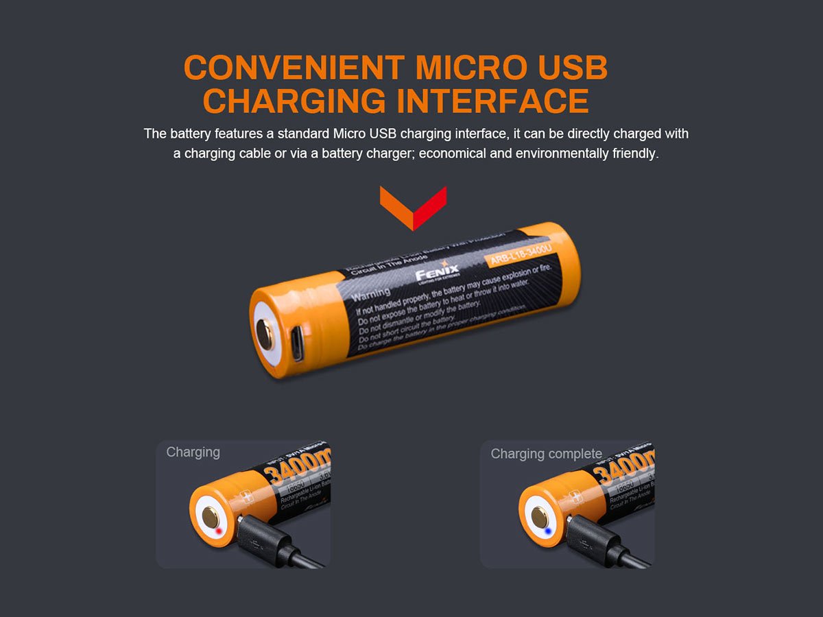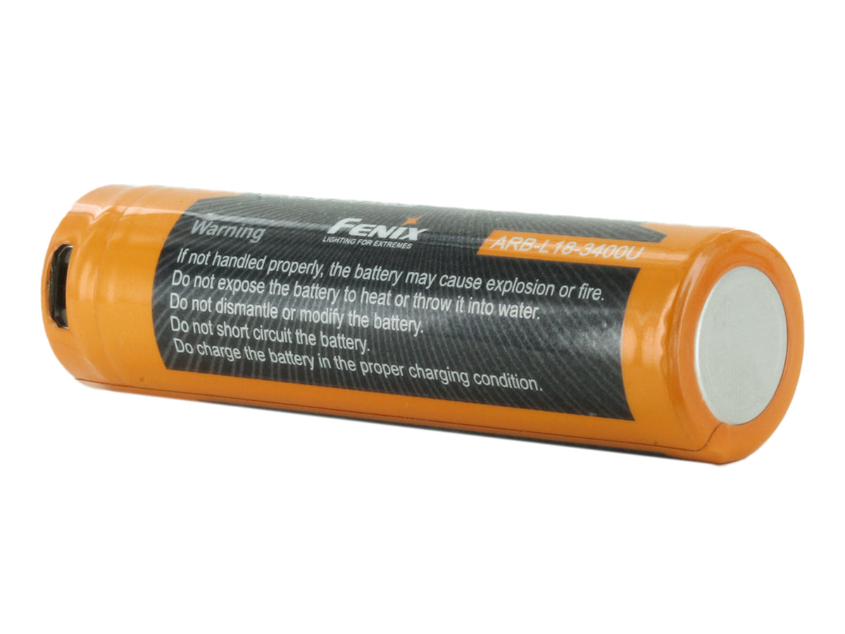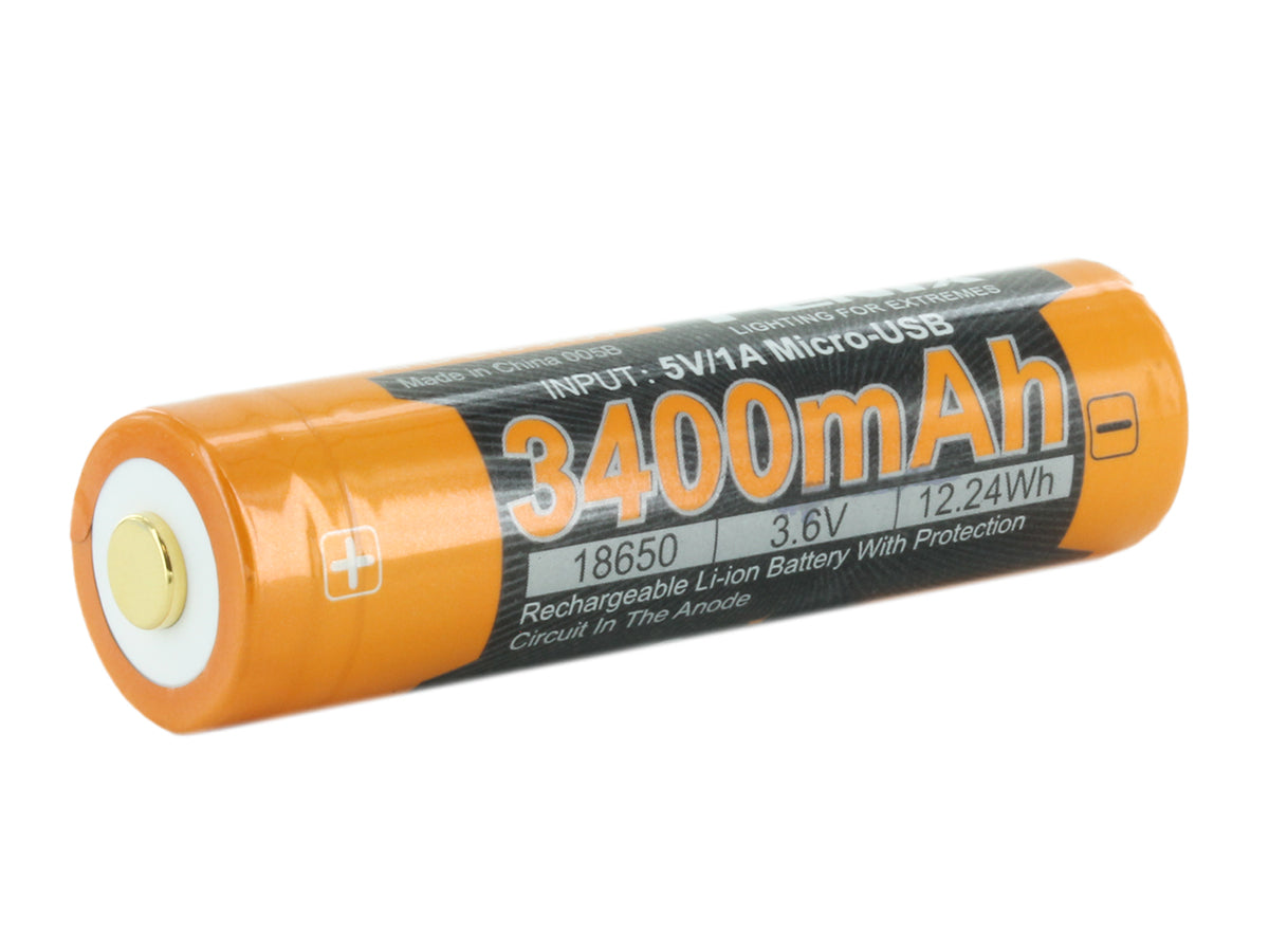 Fenix ARB-L18-3400U 18650 3400mAh 3.6V Protected Lithium Ion (Li-ion) Button Top Battery with Micro USB Charging Port - Clam Shell