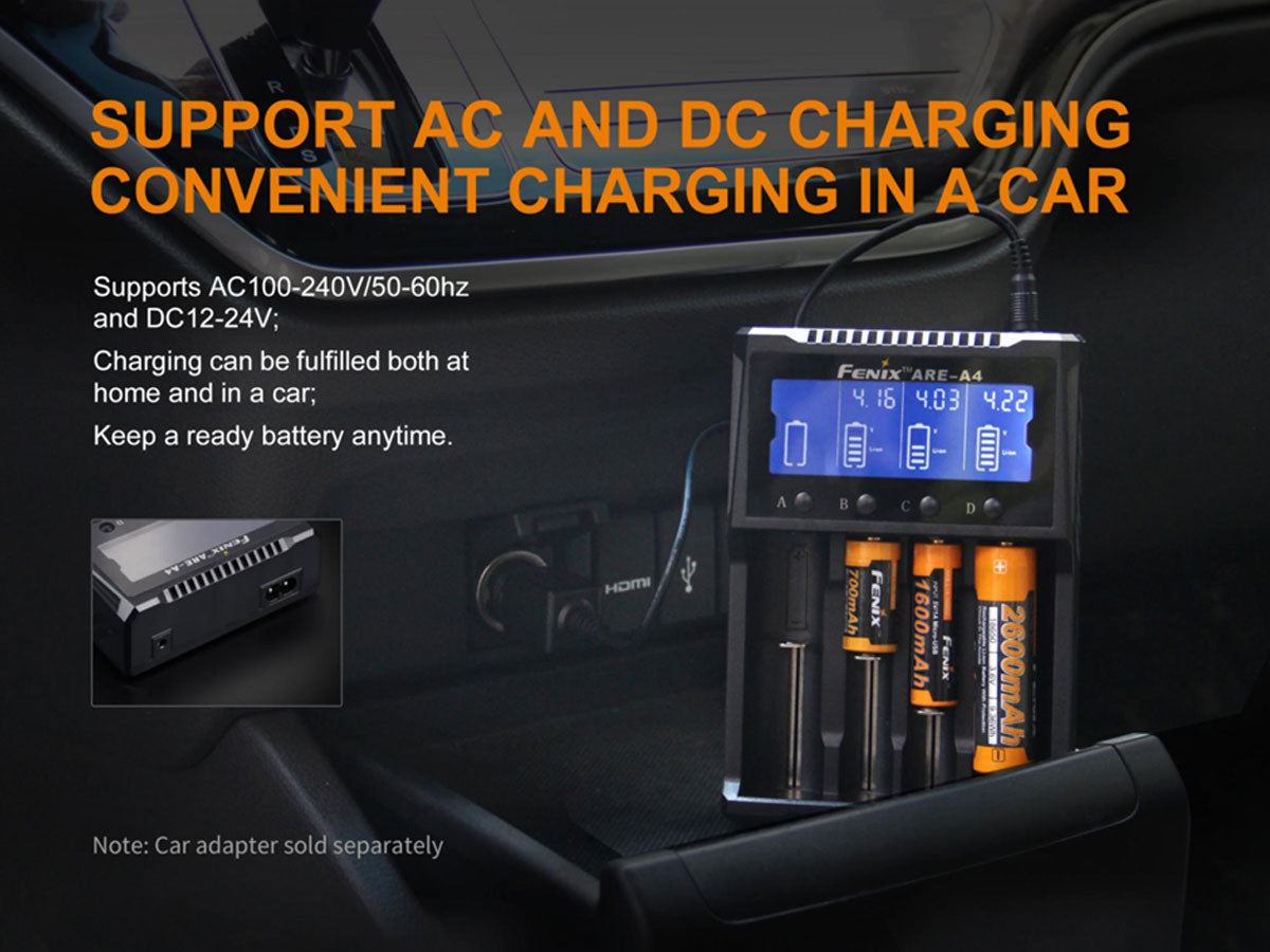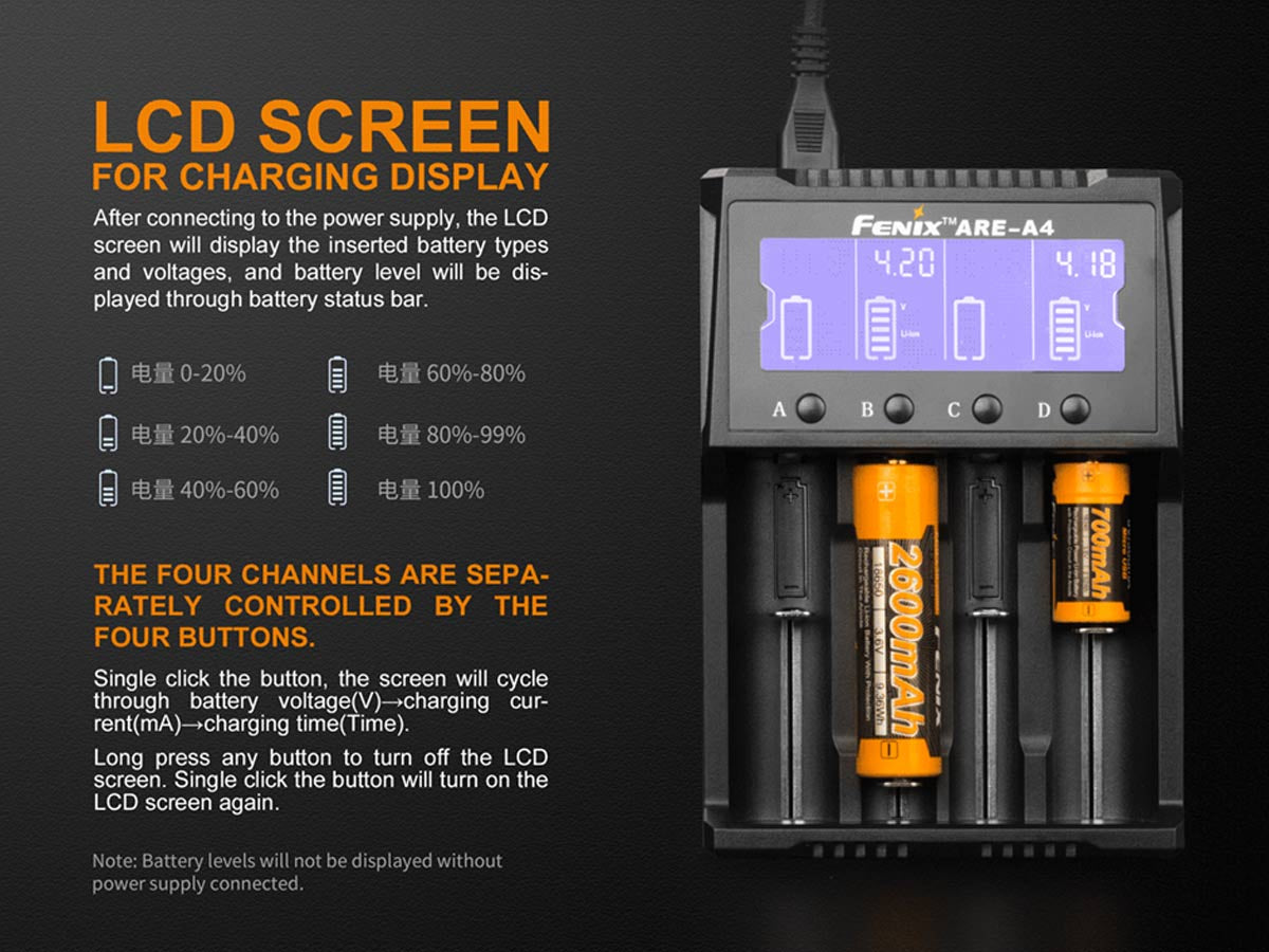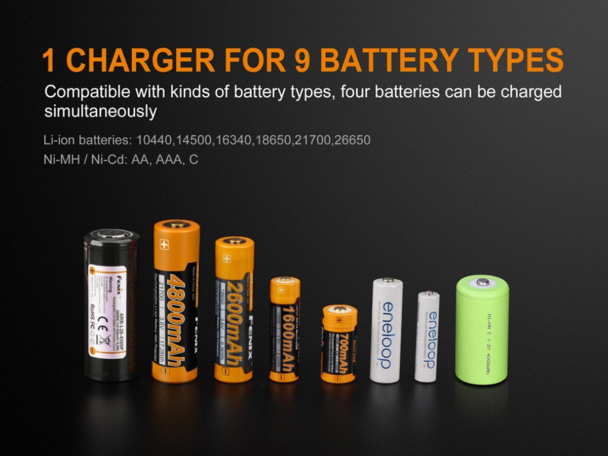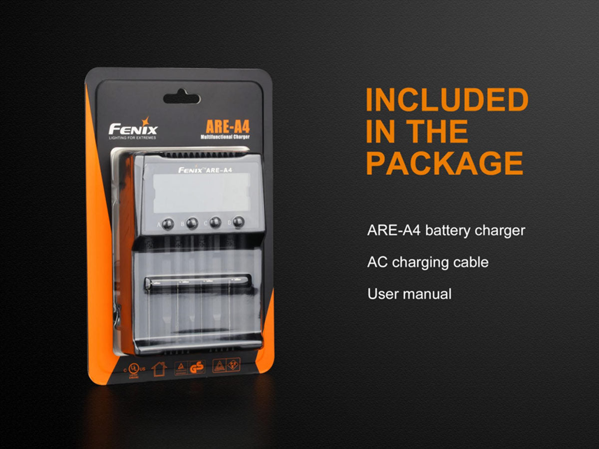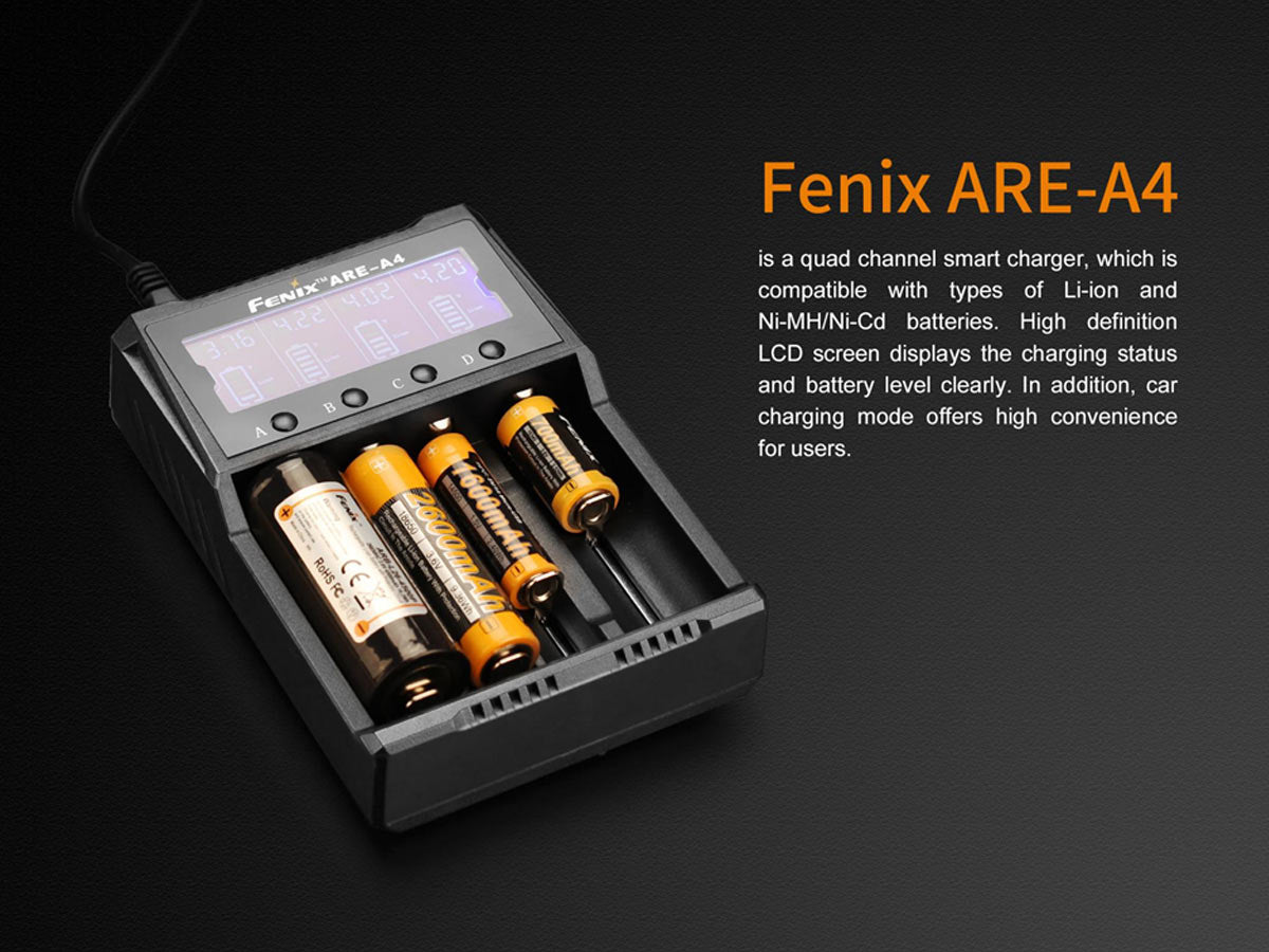 Fenix ARE-A4 Multi-Functional 4 Bay Smart Charger for Li-ion, NiMH, and NiCd Batteries