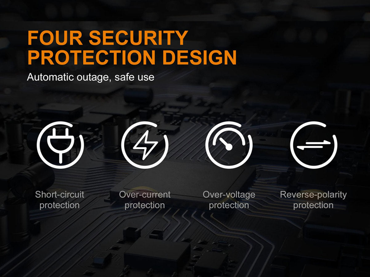 - Multiple protections keeping your charger and batteries safe
