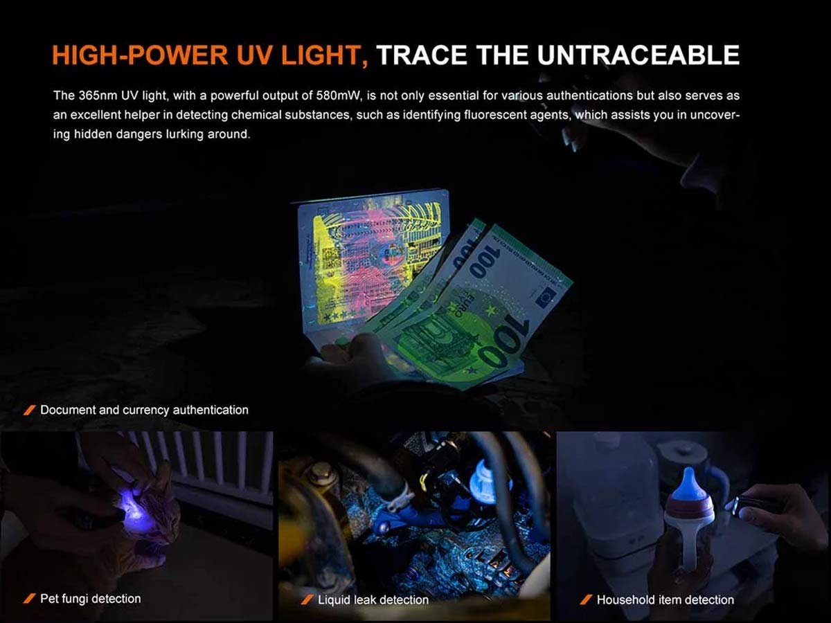 This keychain light's built-in UV output option lets you locate stains. The laser pointer is a great tool for work, letting you emphasize specific parts of your presentation, or indicate problem areas in a construction zone to your coworkers! No matter where you go, the E06R is always ready to assist you in every part of life.