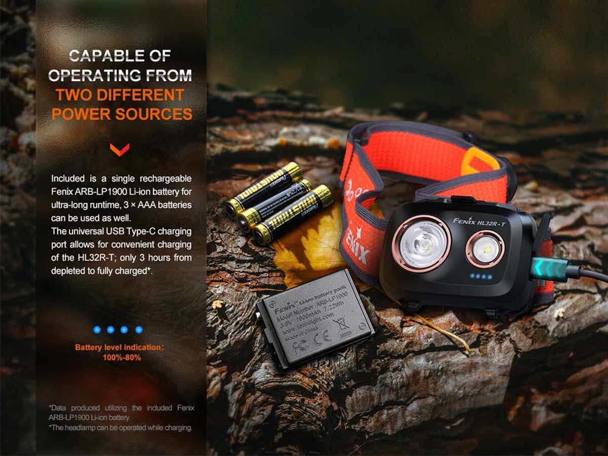 When powering on with the Fenix ARB-LP1900 li-ion battery pack you have no fuss when recharging. This battery pack allows for simple USB-C recharging, to head back outdoors in no time. Not only that, but you can throw in 3 AAA batteries as a substitute for replaceable power on the go.
