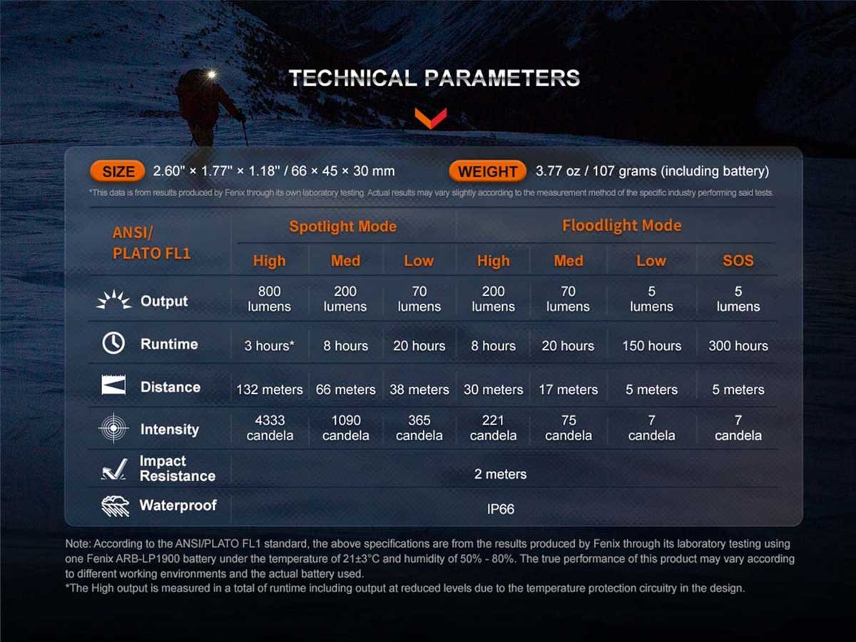 * Spotlight high mode is measured in total runtime including step-downs, due to intelligent temperature control.