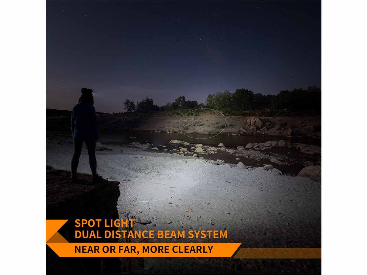 When you're outdoors at night, versatility is incredibly important to ensure your safety at all times; make sure to take the Fenix HM60R USB-C Rechargeable LED Headlamp with you on your late night adventures. This product uses three different types of lighting: spot light, flood light, and red light, making it perfect for activities like trail running, mountaineering, trekking, work on your job site, or even camping. For greater convenience, this light features frequency sensing. If it senses you running at a higher pace, it will output more brightness to ensure your safety. If it senses you walking slower, it will output less brightness to preserve the battery life. It also uses a dual distance beam system which allows you to cover an incredibly wide area with very clear visibility.