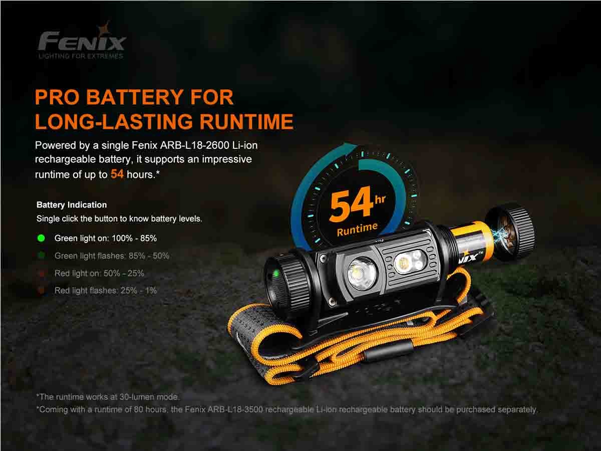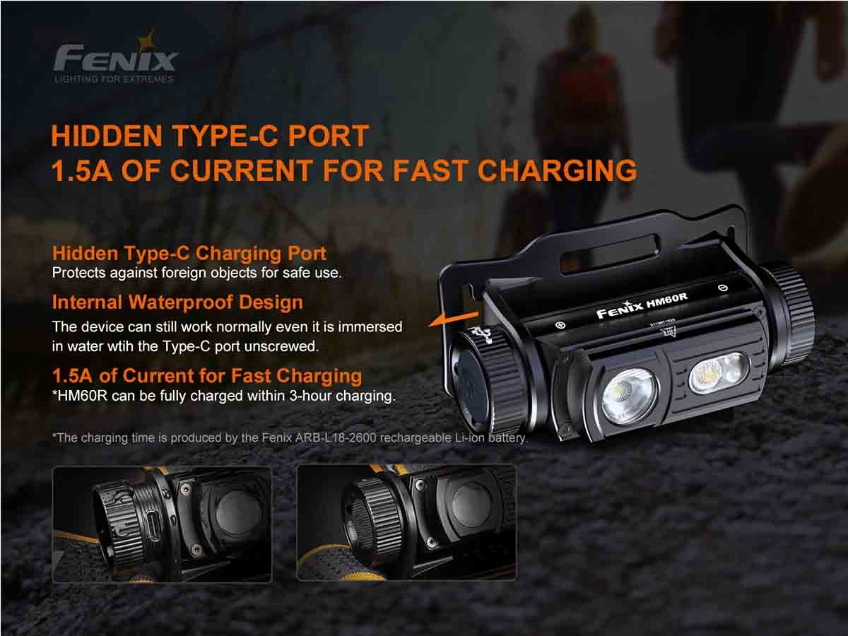 Fenix HM60R USB-C Rechargeable LED Headlamp - Luminus SST40 and CREE XP-G2 - 1200 Lumens - Inludes 1 x 18650