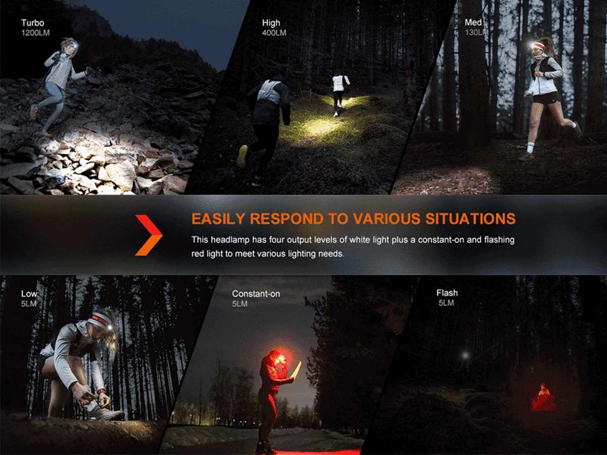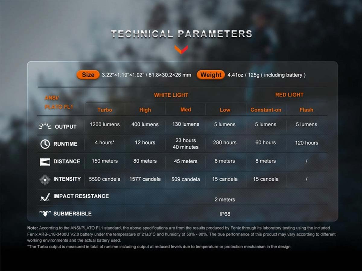 - 1200-lumen turbo reaching 150m provides unmatched light on hikes