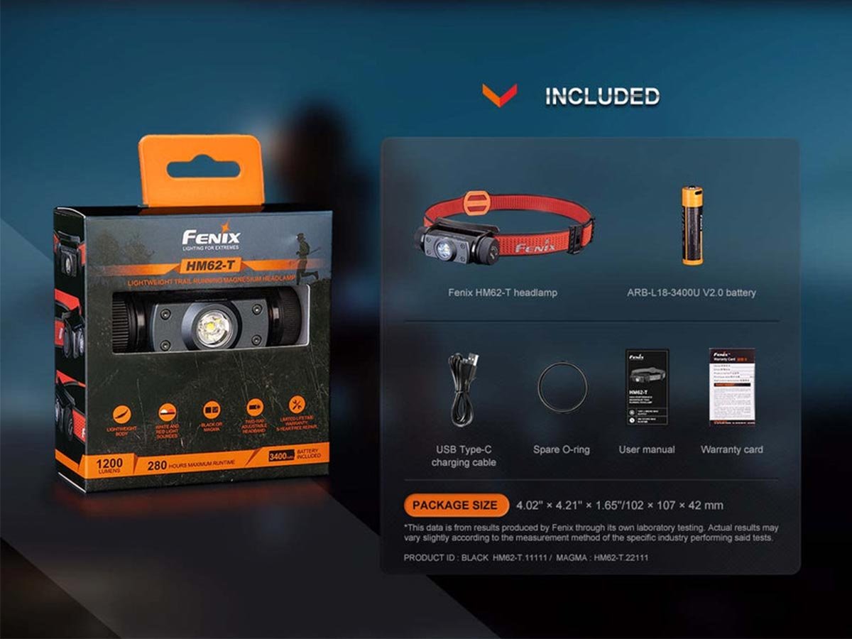 Fenix HM62-T Lightweight Trail Running LED Headlamp - 1200 Lumens - Luminus SST40 - Includes 1 x USB-C Rechargeable 18650 - Black or Magma