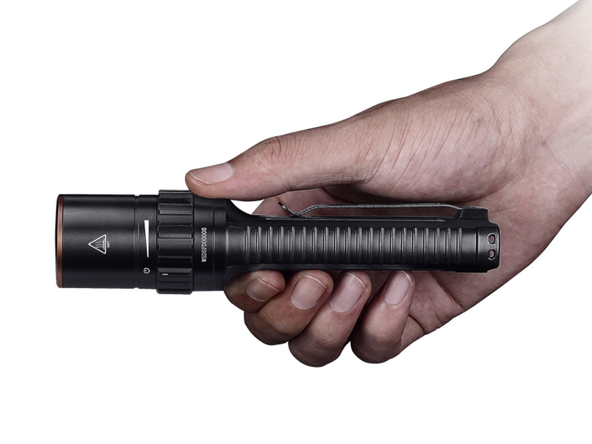 The Fenix LD42 is a powerful flashlight with a brand new design. Its flat body design allows for a perfect fit in the palm of your hand, perfect for extended use without worrying about hand fatigue. This design also provides an anti-roll and anti-slip structure, so you do not have to worry about your light rolling away when you put it down. The housing is made from high quality plastic and the light head is constructed of high grade aluminum, making it lightweight and incredibly durable. It is impact resistant on all 6 sides up to 1.5 meters and waterproof up to 2 meters so you can use it in any weather conditions without fear of damage.