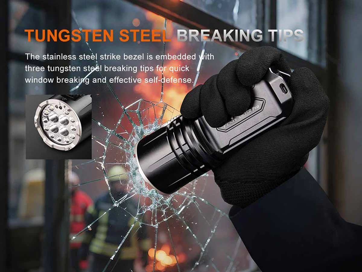 - » Stainless steel strike bezel includes tungsten steel tips for window breaking in emergencies