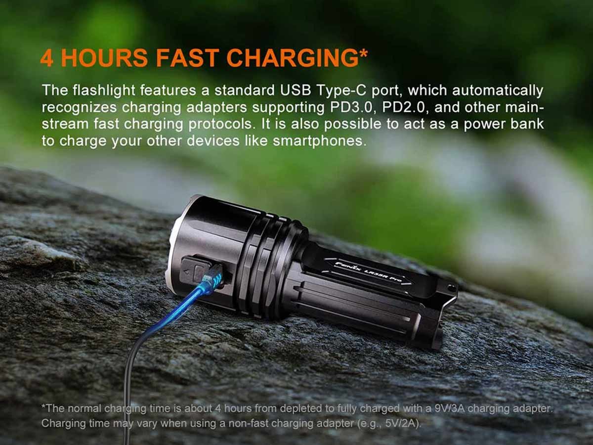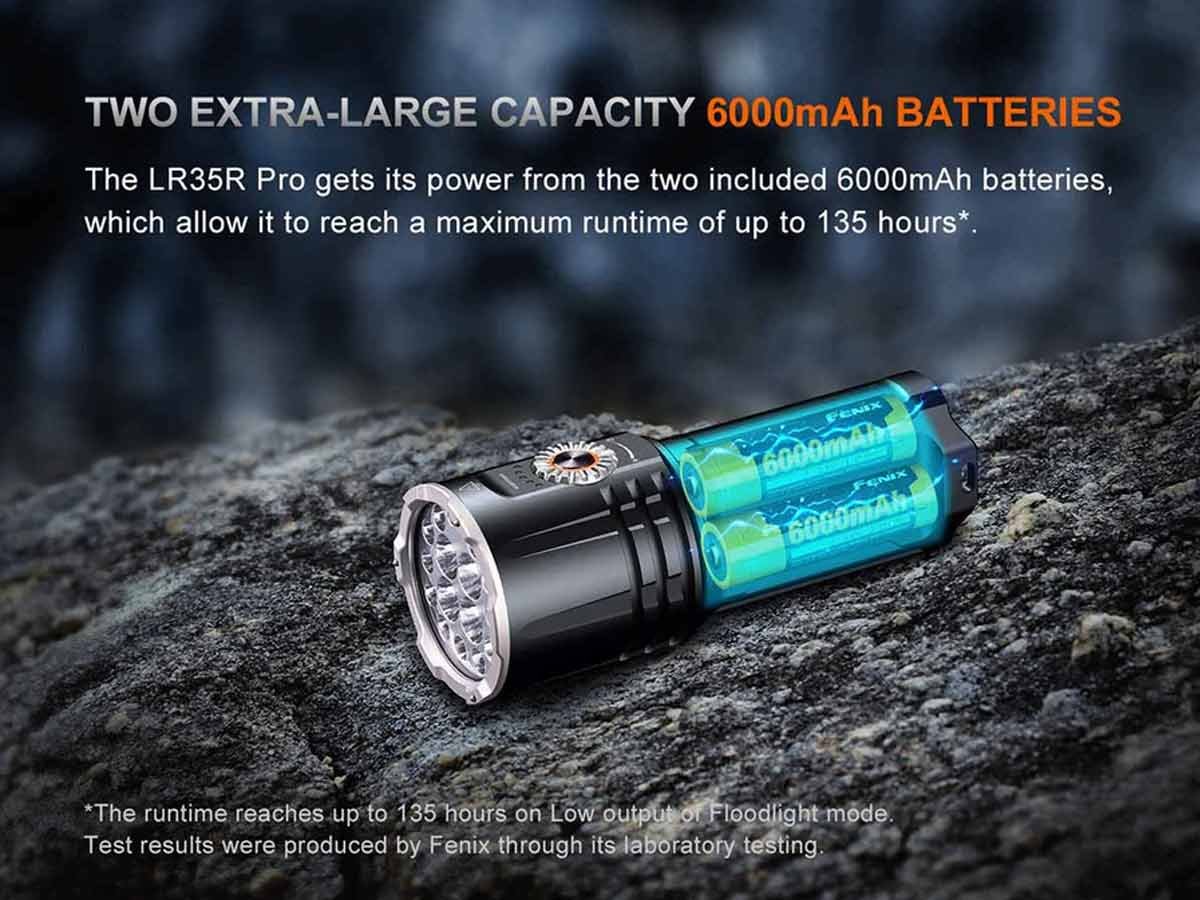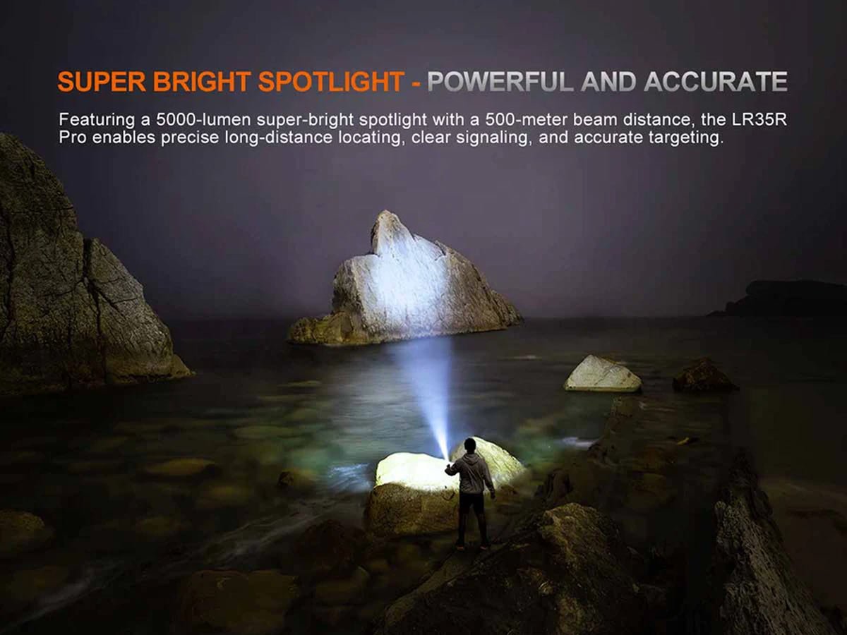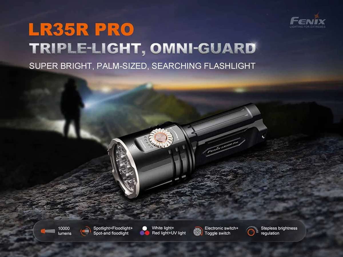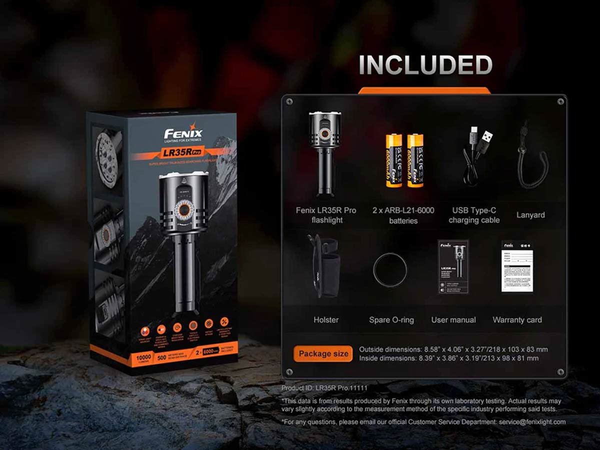 Fenix LR35R Pro USB-C Rechargeable LED Flashlight - 10000 Lumens - 4 x Luminus SFT 25 - Includes 2 x 21700